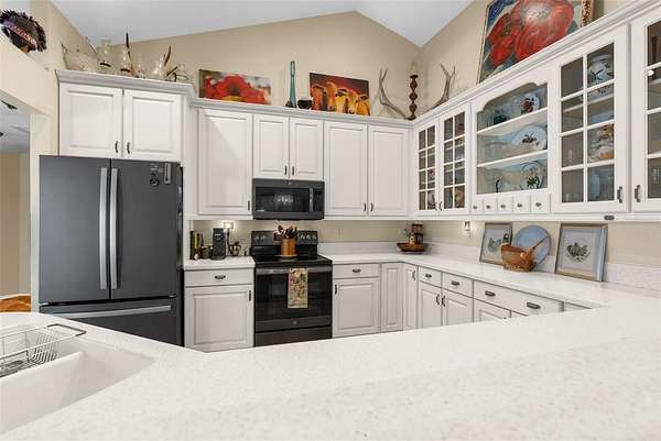 - Cathedral Ceiling(s), Ceiling Fans(s), Eat-In Kitchen, High Ceilings, Open Floorplan, Primary Bedroom Main Floor, Solid Wood Cabinets, Split Bedroom, Stone Counters, Walk-In Closet(s), Window Treatments