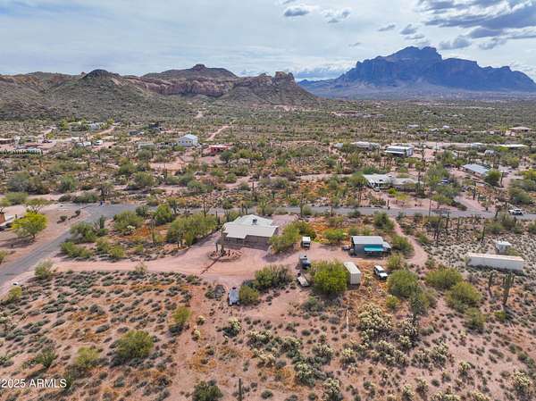 Est $5,131/moGorgeous 5 acre lot with stunning views of the Superstition and Goldfield Mountains. Opportunity for Buyers who want space for all their toys or for Investors to develop the land. Main lot has a custom 2bed, 2 bath home, large barn and pen, water well and a tank for hauled water. Other lots have building pad ready.