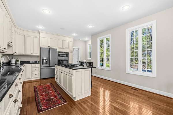 - Breakfast Area, Carpet, Combination Kitchen/Dining, Eat-In Kitchen, Formal/Separate Dining Room, Gourmet Kitchen, Island Kitchen, Primary Bath(s), Soaking Tub Bathroom, Table Space Kitchen, Traditional Floor Plan, Tub Shower Bathroom, Walk-In Shower Bathroom, Window Treatments, Wood Floors
