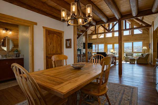 This Stunning 4,086 SqFt Northern White Cedar Log home was Custom Built in 2018 and sits on 35.96 Acres with a stone Dike Wall as the eastern boundary. Offering 4 Bedrooms, 2.5 Baths with a Walk-out Basement Apartment providing an additional living area. Spectacular Views of the Magnificent Spanish Peaks can be seen from 1,600+ SqFt Covered Decks/Patio. A circular driveway wraps around to a 3 Car Attached Garage with a 10x10 ft RV Bay. Located in Piney Ridge Ranch, a gated community 5+/- miles from La Veta. Features include Energy-efficient R50/R26 Insulation, a Standing Seam Metal Roof, Strong Private Well, Water Softener, Tankless Water Heater, Passive Solar Gain, LED Lighting, and DC Ceiling Fans. Engineered Wood Flooring on Main and Loft floors with Porcelain Tile in Kitchen, Mud Room, Laundry, and Bathrooms.