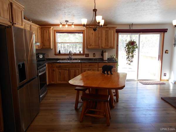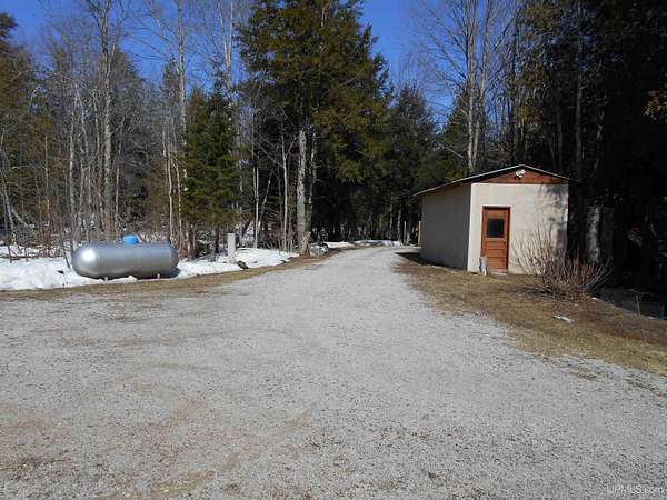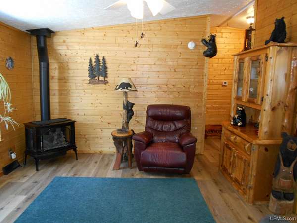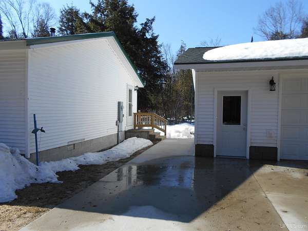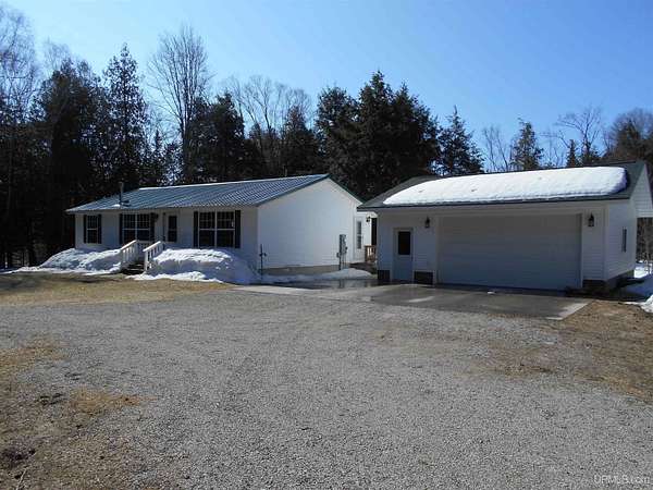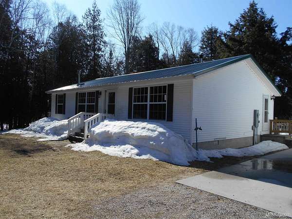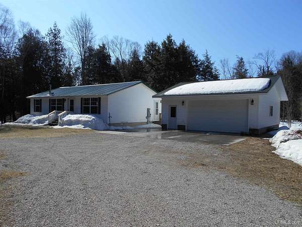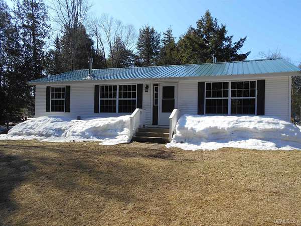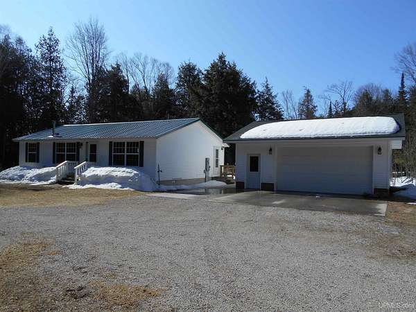 Welcome to this well-appointed rural property featuring a 3-bedroom, 2-bath manufactured home with a 2.5-car detached garage, situated on 3.71 acres. Conveniently located just north of the Thompson blinker light on the west side of M-149, this property offers a peaceful, wooded setting with abundant wildlife, while still being just a short 5-minute drive to Manistique. The home has seen several recent interior updates, including a fully renovated kitchen with rustic hickory cabinetry, updated countertops, stainless steel appliances, new flooring throughout, and pine paneling in many of the living spaces, adding warmth and character. Exterior and site improvements include a detached garage and concrete work completed in 2023, multiple outbuildings for additional storage, a new rear deck, a fenced area ideal for pets, and a new septic tank installed in 2020. Highline fiber internet is already in place, making this home well-suited for modern connectivity in a rural setting. The property is move-in ready and available for immediate possession. There will be a showing period through 4/20/2026 with the seller reserving the right to accept an offer at anytime before that.