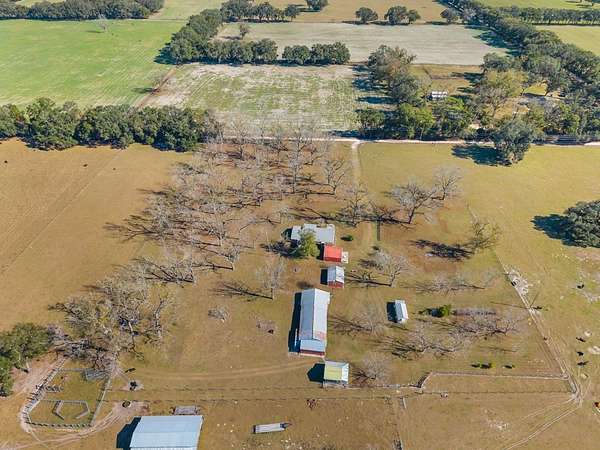 If you've been dreaming of wide-open space, mature trees, and a slower pace of life, this 10-acre agricultural-zoned property in Chiefland delivers. Fully fenced and cross-fenced, the land is thoughtfully laid out and ready for livestock, gardening, or simply enjoying the freedom of country living. The 2 bedroom, 2 bathroom home offers 1,581 heated and cooled square feet and is surrounded by a beautiful mix of mature pecan trees, citrus trees, and a scuppernong grape vine, creating a peaceful, established setting that feels like home the moment you arrive. Inside, a brick fireplace adds warmth and character, perfect for cozy evenings after a day spent outdoors. Imagine morning coffee under the trees, tending your garden, or watching the sun set over open pasture. Multiple outbuildings and a spacious detached garage provide room for projects, equipment, or hobbies, making this property as functional as it is charming. With agricultural zoning and usable acreage, the possibilities here are endless- from a working mini-farm to a private rural retreat. All of this, just minutes from the conveniences of Chiefland, yet tucked away enough to enjoy the quiet and beauty of North Florida living. Properties with this much land, character, and flexibility don't come along often.