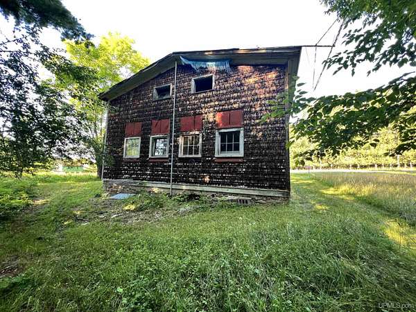 Step back in time with this unique early 20th-century building, set on over 10 acres of stunning woodlands in the heart of Skanee. This historic property, dating back to the early 1900s, has been an integral part of the community and offers endless possibilities. The building itself exudes rustic charm with its weathered wood exterior and intricate shingle work. The 750 square feet in the front of the building has had the flooring replaced and the replacement floor in the loft is almost complete. The rear 750 square feet was converted to a living space many years ago. It is currently not livable and would need extensive work. Well and septic condition are unknown. New rolled roof installed 4 years ago. Surrounded by serene natural beauty, the grounds are rich with apple trees and raspberry bushes. This property is brimming with potential! Ideally, it would be preferred to keep its original charm and restore it to its former glory. Located one mile from Witz's Marina, and close to popular attractions like Big Ericks Bridge and Campground, Mount Arvon and the Mouth of the Huron! Don't miss out on this rare opportunity to own a piece of Skanee history! This information has been secured from sources we believe to be reliable, but we make no representation or warranties, expressed or implied, as to the accuracy of the information. References to square footage, lot size and dimensions, and age are approximate. Buyer must verify the information and bears all risk for inaccuracies. Taxes may change upon sale and are not $0.