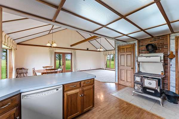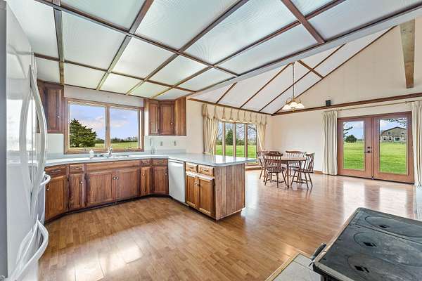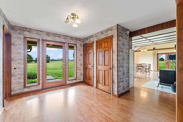 Looking for peaceful country living that also provides space, storage, and flexibility? Look no further, because this 5BR/2.5BA home on 3 acres does not disappoint. Rich character shines through in this custom home with stunning hardwood floors, walnut trim, custom walnut cabinetry, and exposed walnut beams in the main living areas.The kitchen offers an oversized walk-in pantry with a unique cast iron wood-burning cook stove that will also keep the home toasty and warm on those cold MO wintry nights. Thoughtfully custom built and designed with abundant storage throughout, including extensive eaves storage, there's a place for everything. This home is designed for comfort and efficiency with it's three hot water heaters, including an instant hot water heater in the kitchen. The primary suite features flooring, custom built-ins, and detailed trim work all in cheery wood. There multiple living spaces including an upstairs living room and a downstairs bonus room, providing flexibility for entertaining, work, and everyday living. Large Anderson windows fill the home with natural light that capture the peaceful, scenic views surrounding this family oasis. There's plenty of room to spread out, grow, and make it your own. Don't miss the opportunity to call this special gem of a home yours!