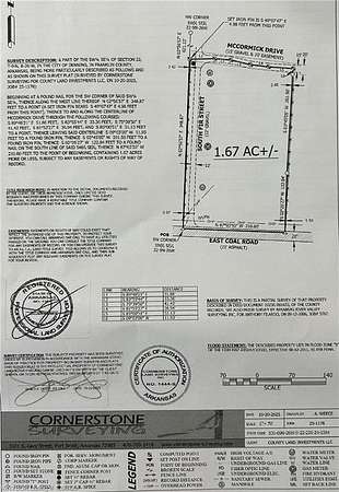 This property has been recently cleared, surveyed, and measures at just under 1.7+/- acres. There are 2 water main hookups (with meter), 3 gas hookups (needs meter), electric poles on site (1 with a meter, but not sure of condition) and a possible existing septic (condition unknown). It comes essentially ready for possibly two home sites, or mobiles could be brought in and rented as an investment. It is located at the corner of S Fir and East Coal Dr. with access along the entire front of the property. Some trees were left for privacy, and you can get to Ozark in less than 10-15 minutes. Lots of possibilities.
