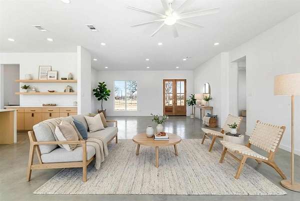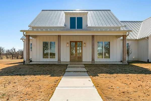 Set on 4+-AC in the heart of horse country, this 2024 modern farmhouse exudes quiet luxury & intentional design. Spanning 3,229SF, the 5 bedroom, 3.5-bath residence pairs clean architectural lines with warm, organic textures. A light-filled open-concept layout is framed by expansive windows that capture gorgeous pasture views & flood the interiors with natural light. Ten-foot ceilings, level 4 smooth wall finishes, & a refined material palette create an atmosphere that feels both sophisticated & effortlessly livable. The kitchen flows seamlessly into the living and dining spaces, designed for elegant entertaining yet perfect for everyday comfort. Thoughtfully constructed for longevity and efficiency, the home features full spray-foam insulation, a trench-and-pier slab with post-tension reinforcement, and a Class IV standing seam metal roof offering architectural distinction and potential insurance savings. The Hardie board-and-batten exterior delivers timeless appeal with minimal maintenance, while oversized glass doors blur the line between indoors & out. Beyond the home, the acreage unfolds with cross-fenced pastures, new top-rail pipe fencing with 5' no-climb wire, an access-controlled gated entrance, & water lines and spigots to the pastures. A spray-foam insulated 30'x40' shop, barn, loafing sheds, provide both beauty & function. Ideally positioned just minutes from Whitesboro with convenient access to I-35, approximately one hour to Fort Worth & within reach of DFW International Airport, the property offers the rare balance of rural serenity and metropolitan accessibility. Weekends can be spent boating on Lake Texoma or enjoying the recreation of Lake Ray Roberts--both just a short drive away--while returning home to privacy & refined ranch living. Whether envisioned as a country retreat or working ranchette, this property offers modern ranch living. 11.5+-AC available.