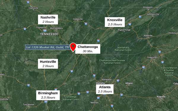 NEW MOUNTAIN COMMUNITY! 1.31+/- ACRE Homesite nestled within GATED River Gorge Ranch, wooded Lot 1326 is an ideal setting for a retreat immersed in nature. River Gorge Ranch blends scenic surroundings with modern conveniences with natural landscapes and community. Residents enjoy incredible TN RIVER VIEWS, nearby outdoor recreation, and thoughtfully- planned RESORT STYLE AMENITIES. Newly open Riverdance Restaurant, with additional Village Square amenities coming including retail, fitness, pavilion, and POOL. Underground utilities and community infrastructure support smooth future building. Conveniently located with easy access to I-24, you're only 30 MIN. to CHATTANOOGA. Within 2.5 hours to Nashville, Atlanta, and Knoxville, this wooded homesite offers a mountaintop escape without sacrificing convenience. Tour River Gorge Ranch now to select your preferred homesite!