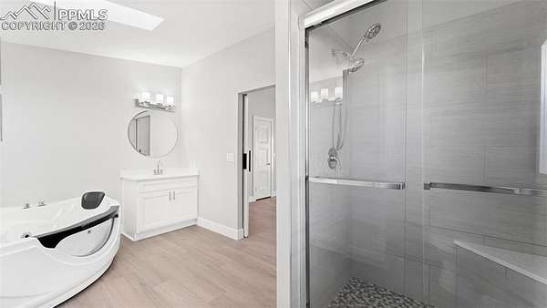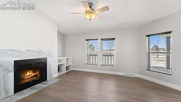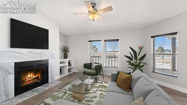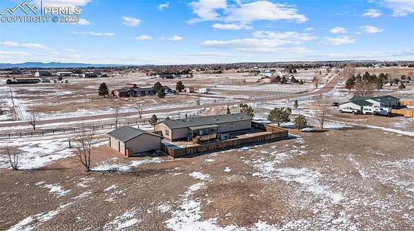 Spread Your Wings on 5.85 Acres of Possibility-Horse-Zoned & Ready for Your Vision. If you've been dreaming of wide-open space, room for horses, the freedom to build your ideal setup-this is your canvas.Situated on 5.85 usable acres & zoned for horses, this Falcon Heights property offers a combination of peaceful country living 20 min from Colo Springs & 5 min from Falcon's amenities. Enjoy breathtaking, unobstructed views of Pikes Peak,the surrounding mountain range-all with easy paved access.The land itself is the star. Expansive, level acreage provides endless opportunities to add barns, workshops, arena, additional outbuildings, RV storage, or whatever your lifestyle requires. A circular driveway lined with mature trees welcomes you home, while a seasonal creek at the rear of the property enhances privacy and attracts local wildlife, creating a serene, park-like setting.The remodeled 2,031 sq. ft. ranch-style home offers comfortable 1-level living, allowing you to focus on the lifestyle outside your door. The brand-new kitchen features granite countertops, breakfast bar, new cabinetry w/generous pantry storage, updated lighting, built-in microwave, and new dishwasher. Luxury LVP flooring, fresh paint, new interior doors, trim, window coverings, and a brand-new furnace complete the modern updates.The inviting living room with a wood-burning fireplace provides the perfect place to unwind after a day outdoors. W/four spacious bedrooms and three well-appointed bathrooms,ample room for family, guests, or home office.Primary suite serves as a private retreat w/double-entry walk-in closet,spa-inspired en-suite bath featuring a heated jetted tub and large walk-in shower.For toys, trailers, or projects, the detached three-bay garage includes 30-amp RV service and generous workspace. Outdoor living is just as appealing, with a covered front entry, covered rear deck, outdoor jacuzzi, and a private fenced area for pets.Your land. Your vision. Your next chapter starts here.