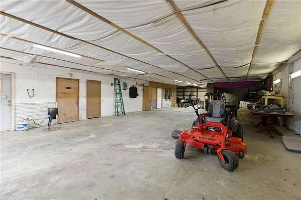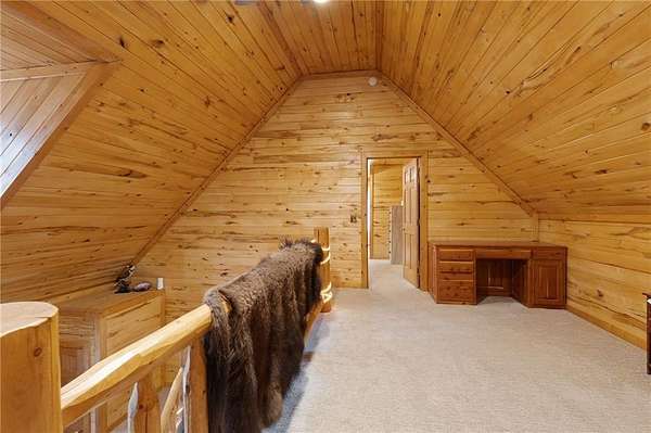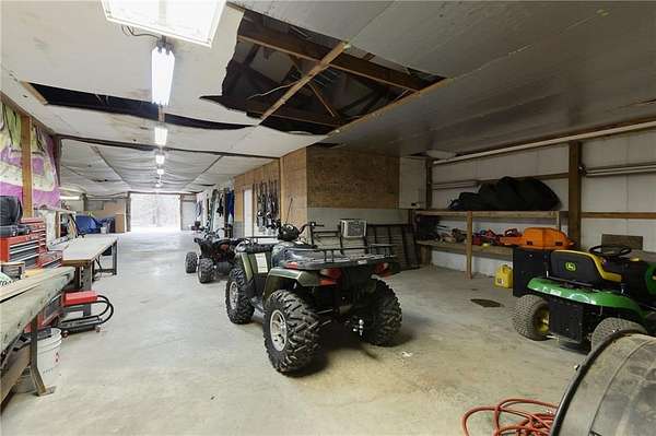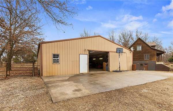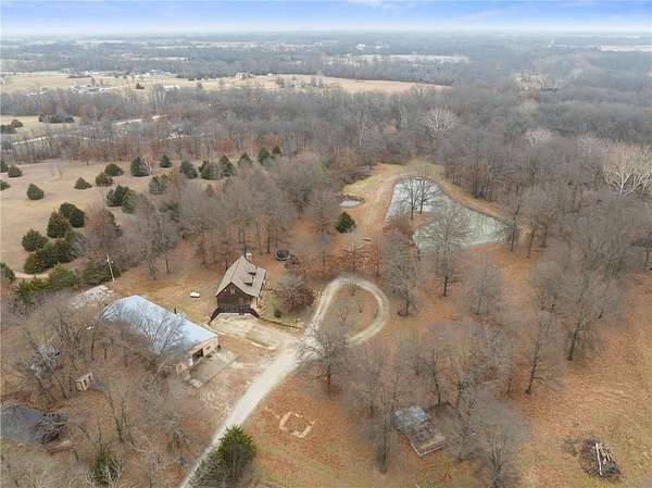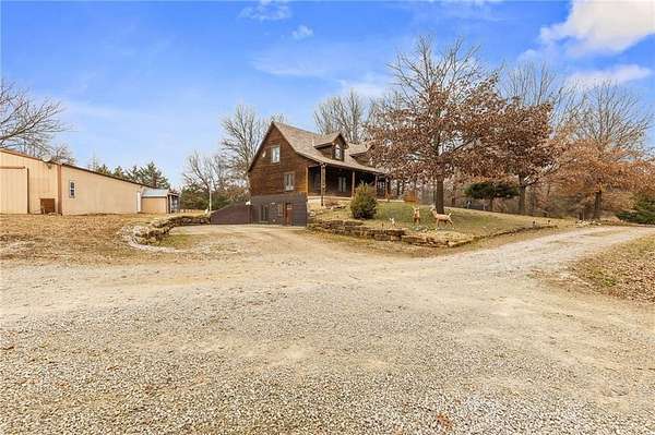 HUNTER'S RETREAT NEAR KC! 4 Bedroom Log cabin home on 20 Acres (MOSTLY WOODED) with so much to offer. Located off of Interstate 49 / 71 allows for under an hour commute to Downtown KC. Trophy Bucks are a common sighting on the cleared ATV path which leads back to tree stands, as well as an abundance of other wildlife. Roughly 4 acres of metal tube fencing along with stables is the perfect setup for horses or other farm animals. The stocked pond allows for hours of fishing entertainment. Three different chicken coops & a fenced garden plot finish off this self sufficient hobby farm. The oversized outbuilding with concrete floors, electricity, Wood stove, office, half bathroom & PAINT BOOTH. A perfect setup for an auto shop business or weekend projects. Inside the home features the rustic charm and warmth that only a log cabin can offer. The living room boasts soaring ceilings and a wood stove for winter efficiency. Two bedrooms are located on this level. Upstairs offers another bedroom with an en-suite and a loft overlooking the living room. The basement includes a family room w/ second wood stove, hidden storage room and a separate in-law quarters one bedroom apartment with a mini kitchen / living room and ground level access. Perfect for guests, Short term rental potential, or multi-generational living needs. The AC and roof are only three years old. Don't let this one of a kind 20 ACRE property (with income potential) slip away. Call today to schedule a showing.