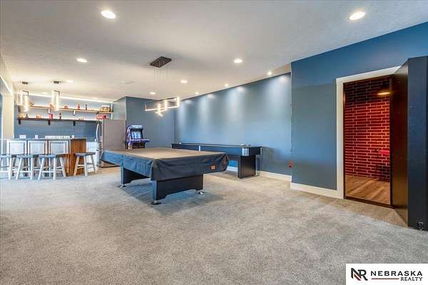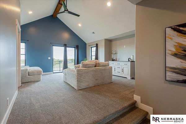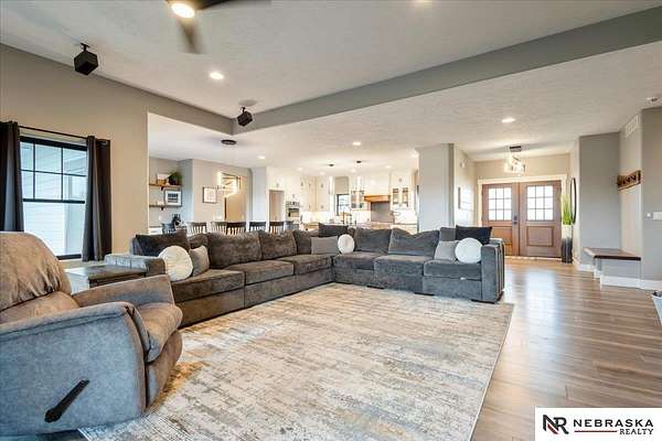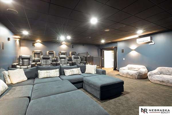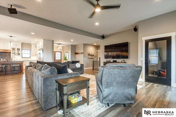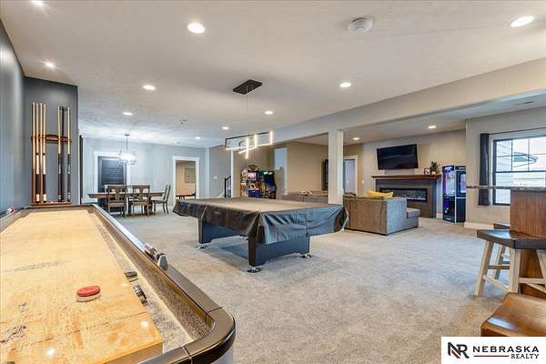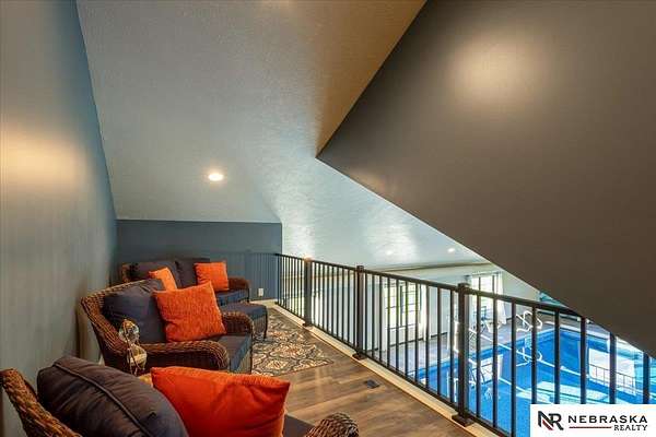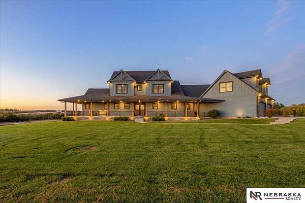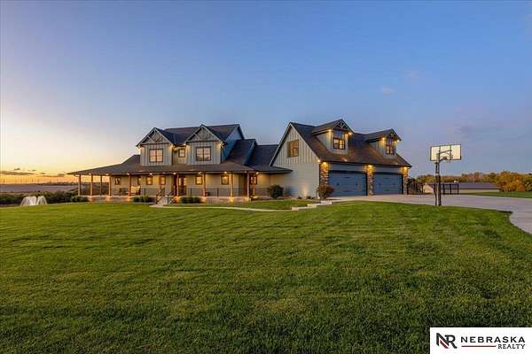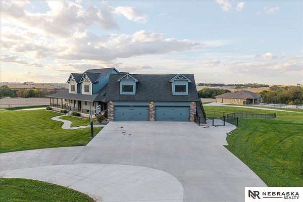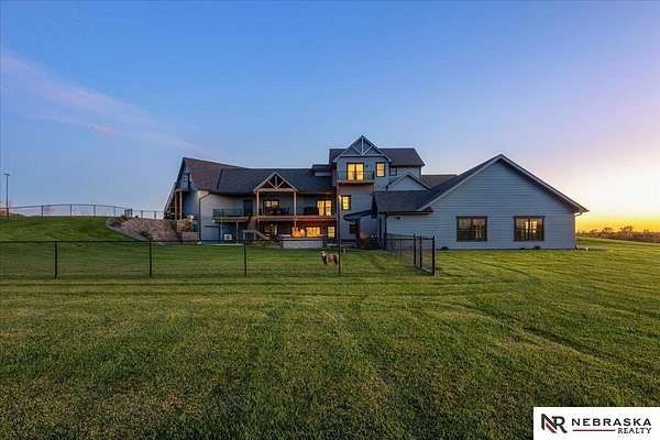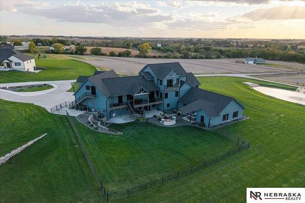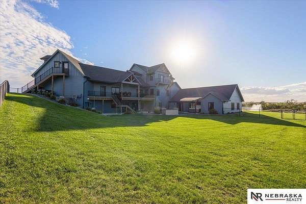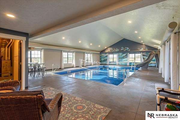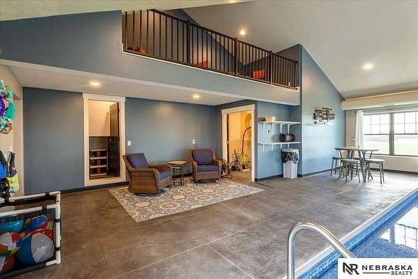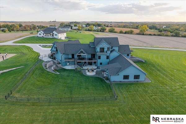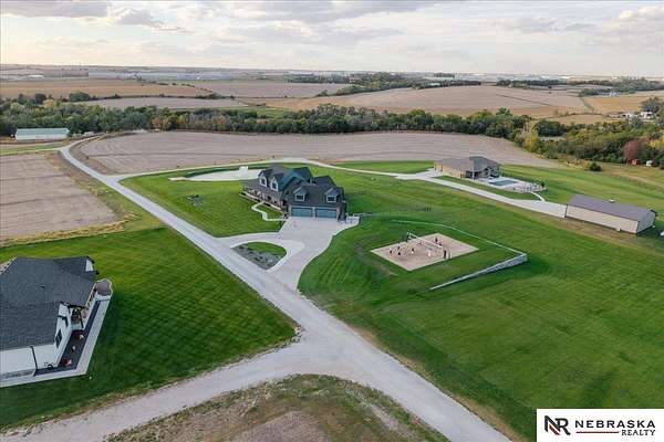 Erin Oberhauser, 402-677-1883, realtorerin@me.com, https://www.nebraskarealty.com - Five lush irrigated acres with more than 10,000 finished square feet across three levels and a wide range of indoor and outdoor amenities. The main floor centers on a large great room with fireplace, a well-equipped kitchen, dining area, office, and a primary suite with nearby laundry and loft access. The upper level offers additional bedrooms, baths, a living area, and second laundry. A separate second-level accessory dwelling includes its own kitchen, dining area, bedroom, bath, and exterior entrance. The lower level expands the living space with a rec room, CEDIA-certified theater, exercise room, bedroom, kitchen, saferoom/vault, and an indoor pool. Outdoor features include a swimming pond, patio, sand volleyball court, fire feature, forested area, and open recreation space. Four-car garage with EV outlet plus an additional lower-level garage. Schedule a private tour to explore the layout, amenities,