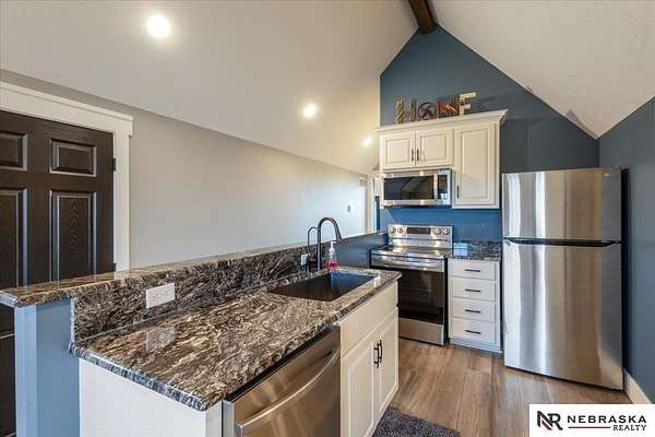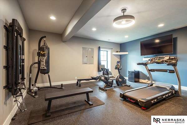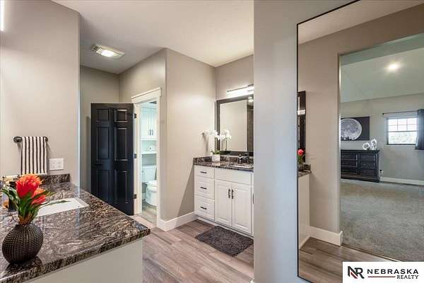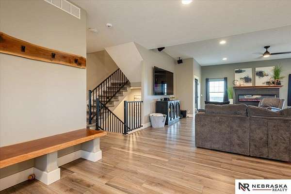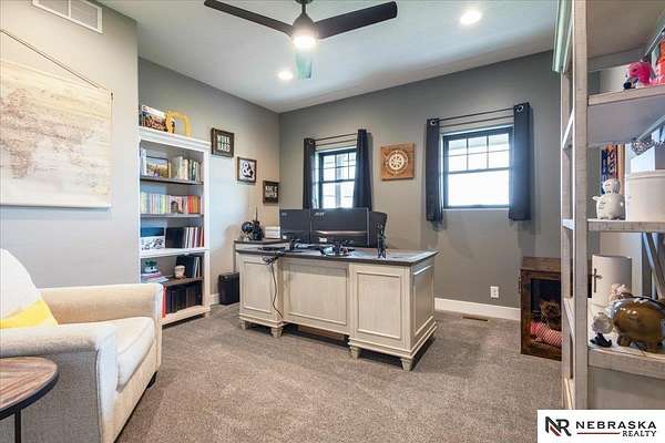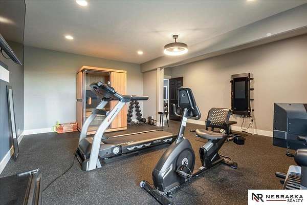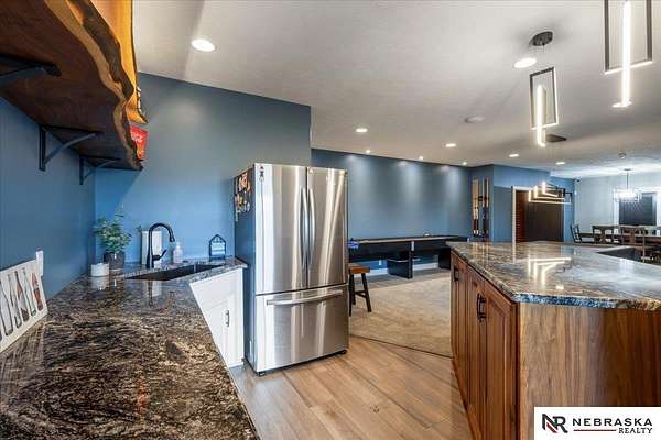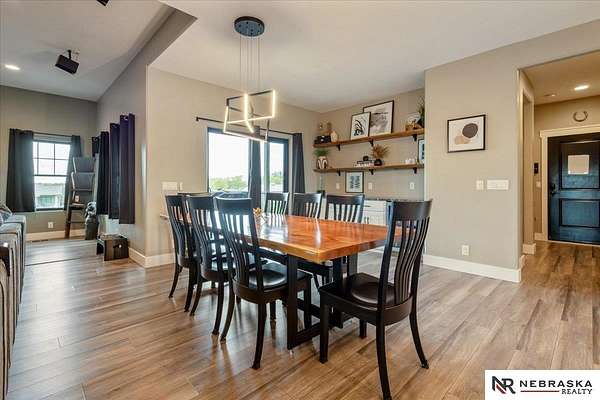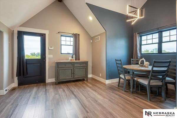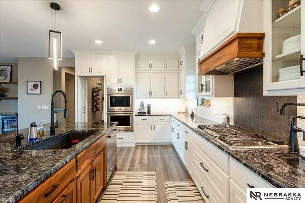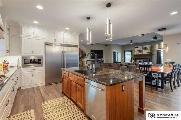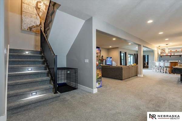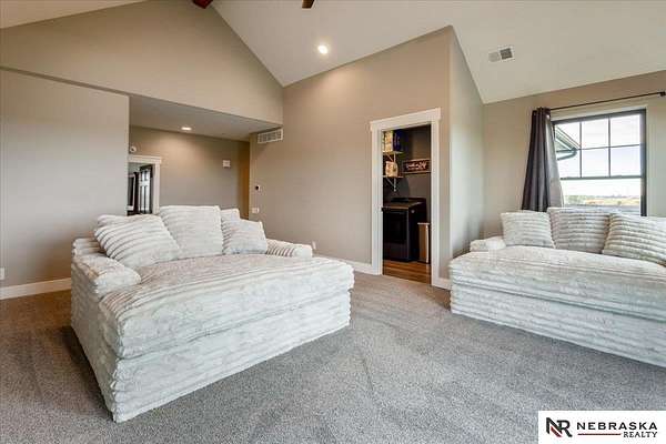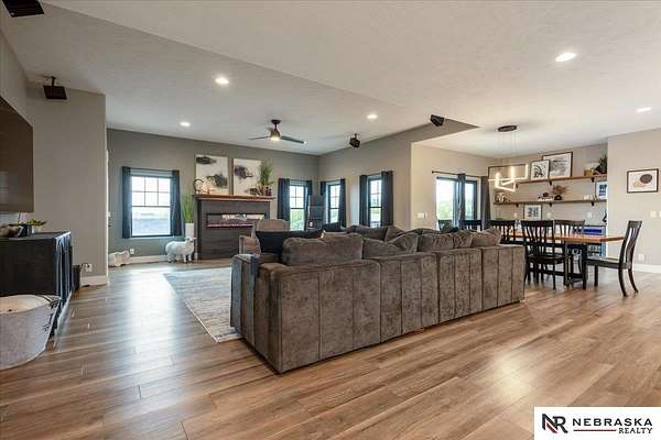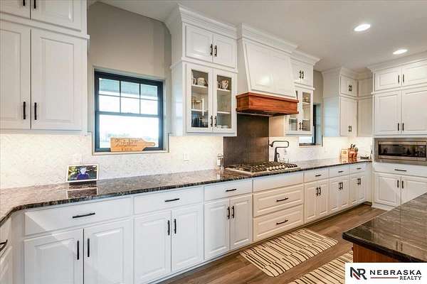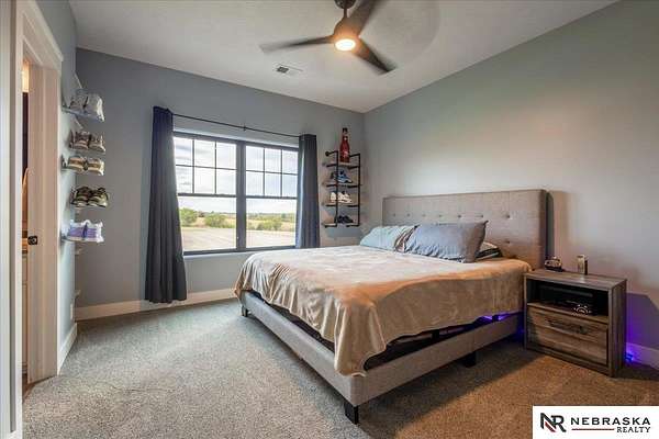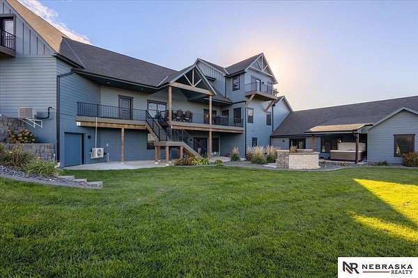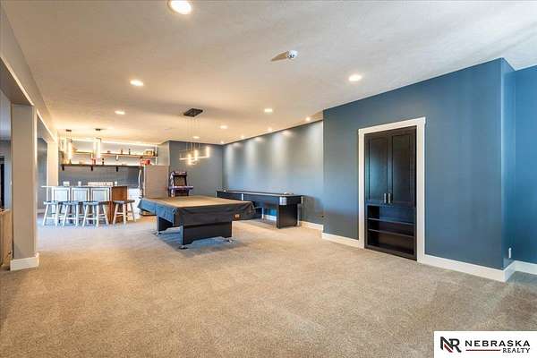 Erin Oberhauser, 402-677-1883, realtorerin@me.com, https://www.nebraskarealty.com - Five lush irrigated acres with more than 10,000 finished square feet across three levels and a wide range of indoor and outdoor amenities. The main floor centers on a large great room with fireplace, a well-equipped kitchen, dining area, office, and a primary suite with nearby laundry and loft access. The upper level offers additional bedrooms, baths, a living area, and second laundry. A separate second-level accessory dwelling includes its own kitchen, dining area, bedroom, bath, and exterior entrance. The lower level expands the living space with a rec room, CEDIA-certified theater, exercise room, bedroom, kitchen, saferoom/vault, and an indoor pool. Outdoor features include a swimming pond, patio, sand volleyball court, fire feature, forested area, and open recreation space. Four-car garage with EV outlet plus an additional lower-level garage. Schedule a private tour to explore the layout, amenities,