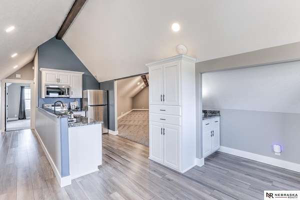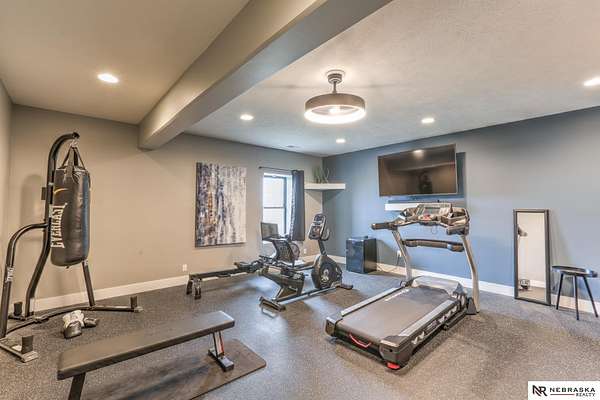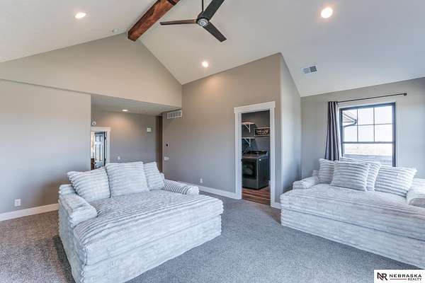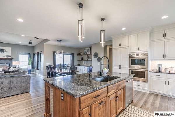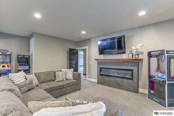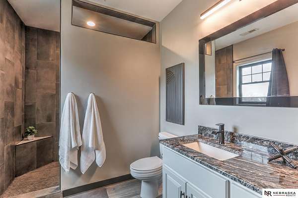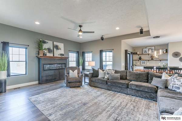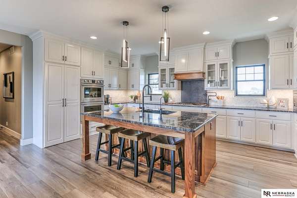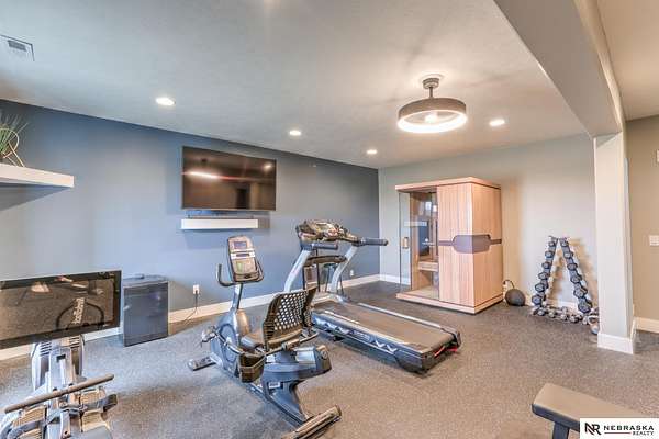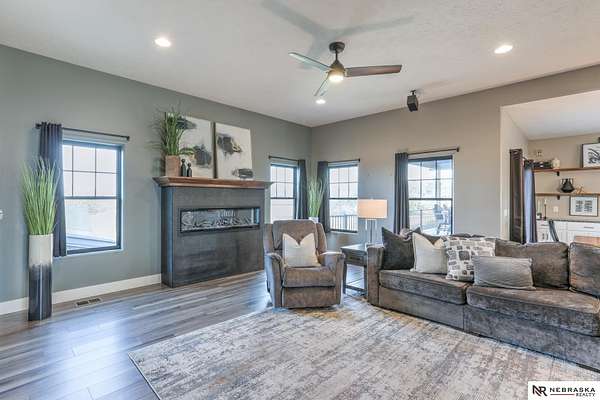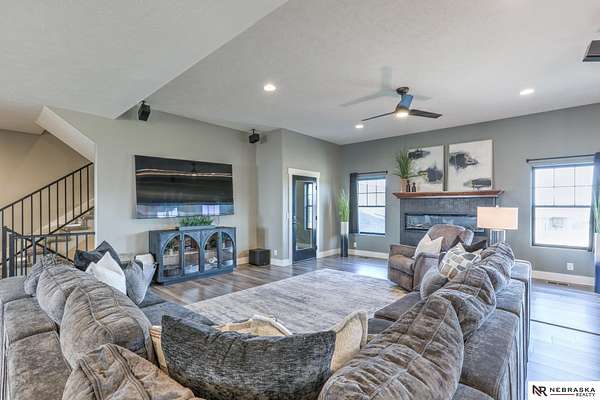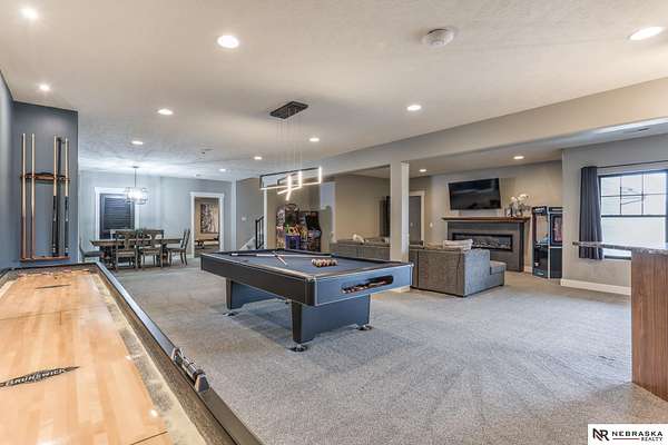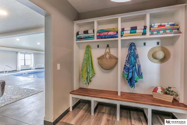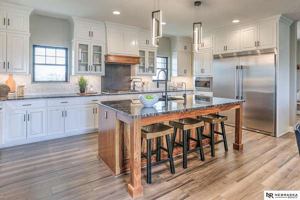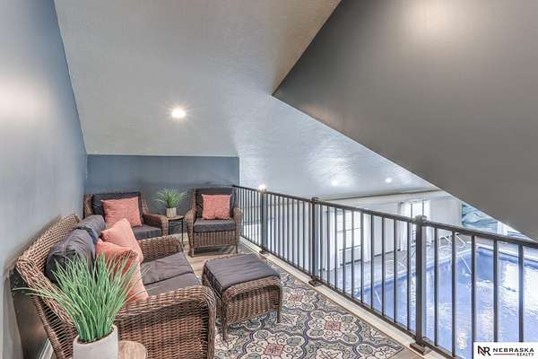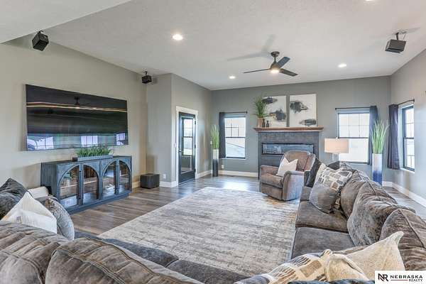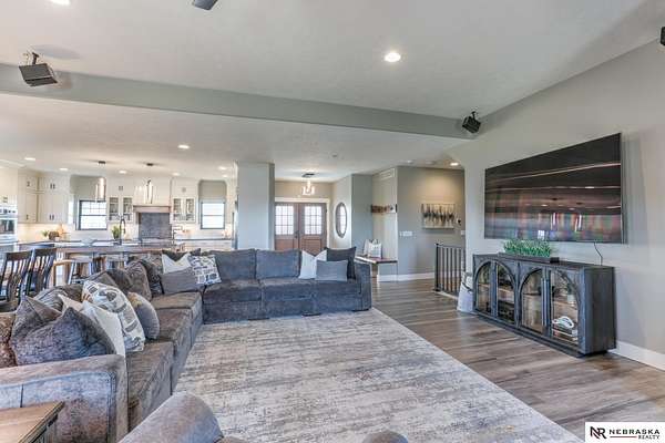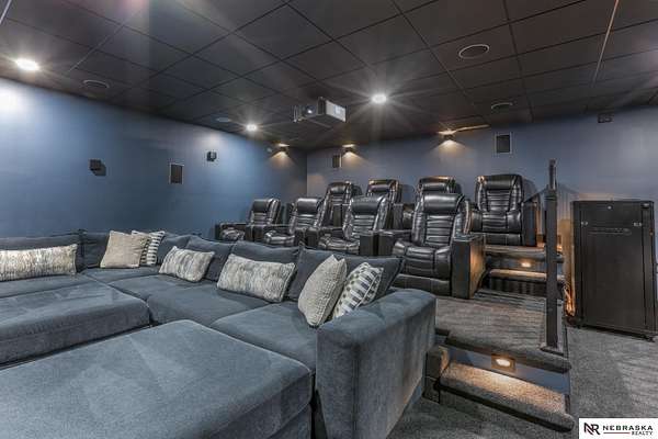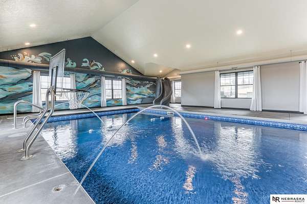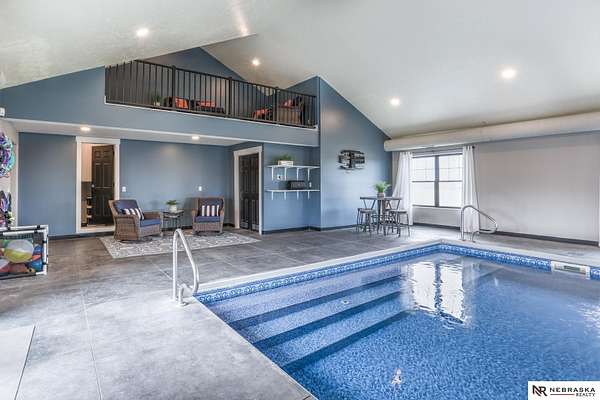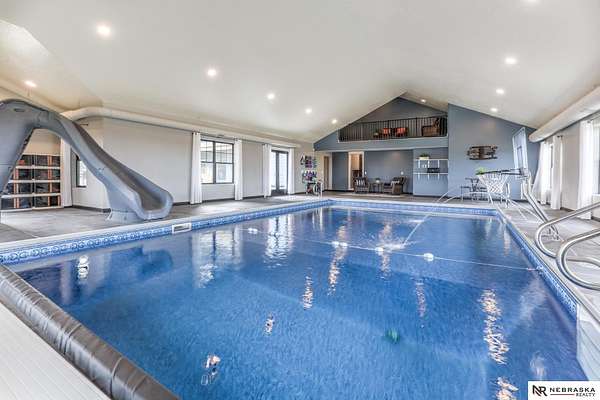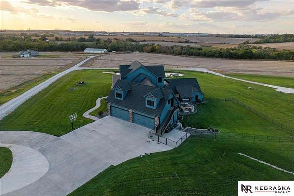 Erin Oberhauser, M: 402-677-1883, realtorerin@me.com, https://www.nebraskarealty.com - Five lush irrigated acres with more than 10,000 finished square feet across three levels and a wide range of indoor and outdoor amenities. The main floor centers on a large great room with fireplace, a well-equipped kitchen, dining area, office, and a primary suite with nearby laundry and loft access. The upper level offers additional bedrooms, baths, a living area, and second laundry. A separate second-level accessory dwelling includes its own kitchen, dining area, bedroom, bath, and exterior entrance. The lower level expands the living space with a rec room, CEDIA-certified theater, exercise room, bedroom, kitchen, saferoom/vault, and an indoor pool. Outdoor features include a swimming pond, patio, sand volleyball court, fire feature, forested area, and open recreation space. Four-car garage with EV outlet plus an additional lower-level garage. Schedule a private tour to explore the layout, ameniti
