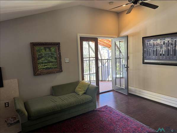 Welcome to your home in the mountains of Northern New Mexico! So many features on this large custom property! Open, vaulted living/dining, gourmet kitchen, full library with wood burning stove & balcony access, spacious first level master suite with large bath and huge walk-in closet, 2nd first-floor bedroom, flexible upstairs suite, attached two car garage with extra storage, solar system with Tesla batteries, greenhouse, PLUS Guest House with two separate two bedroom apartments! Six lovely private acres with woods and an open irrigated field! (Additional adjacent nine acres available for an additional $100,000 - ask for details!) All of this located in the much-loved Gallinas Canyon and just minutes from the El Porvenir campground in the Santa Fe National Forest where the trailhead for the hike up Hermit's Peak meets the Gallinas River!