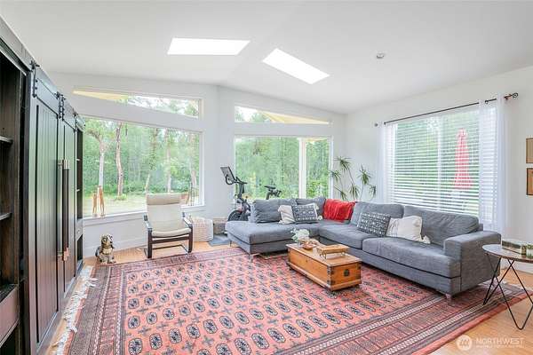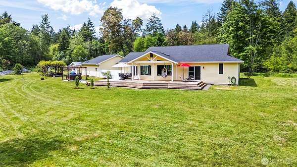 Est $4,873/moExperience the serenity of a 5-acre sanctuary with this charming one-level home. Featuring an open floorplan, large kitchen, 3 bedrooms, 2 baths, & primary suite with dual walk-ins. Enjoy a fenced yard with a nature trail, fruit trees, and a watershed for beauty without upkeep. New deck, hot tub, whole-house generator, and ample storage with 2 outbuildings, and a 3-car garage. Your peaceful Key Peninsula retreat awaits.