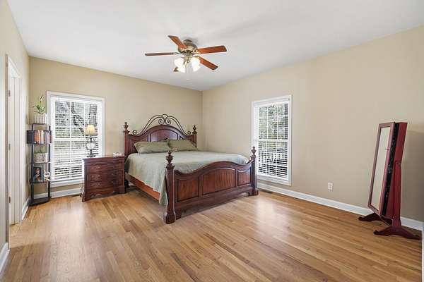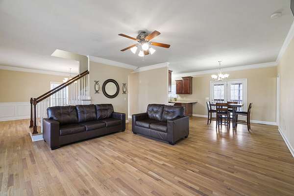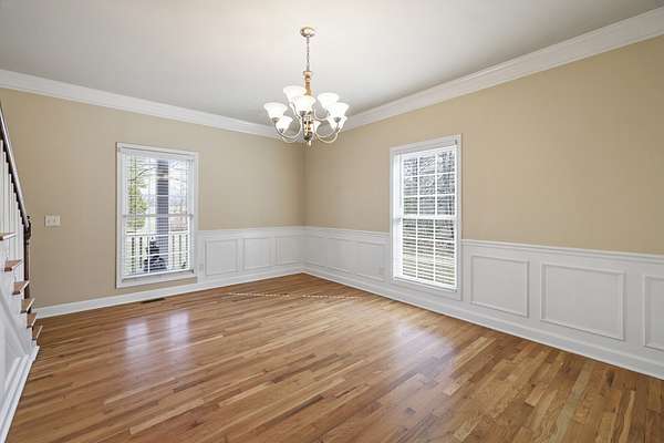 Newly refinished Hardwoods throughout primary living space on first floor. Living room, dining room, kitchen, breakfast nook and primary bedroom & closet all updated. New downstairs HVAC 3/18/26, upstairs unit 3 years old. Gutters include Leaf Filter Guards.