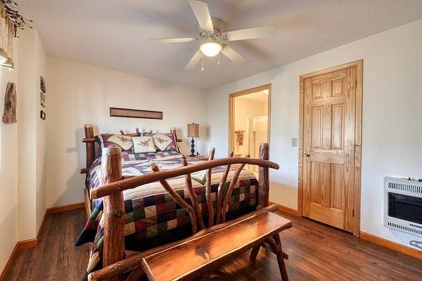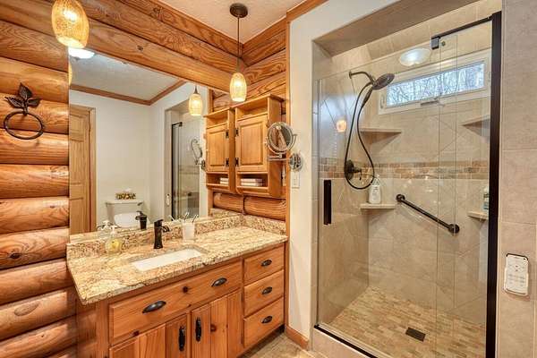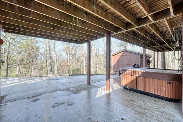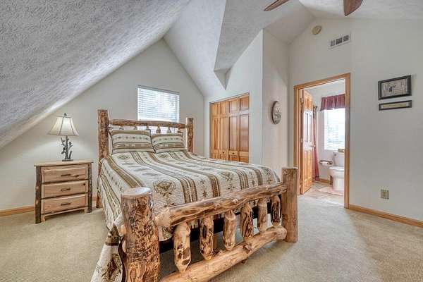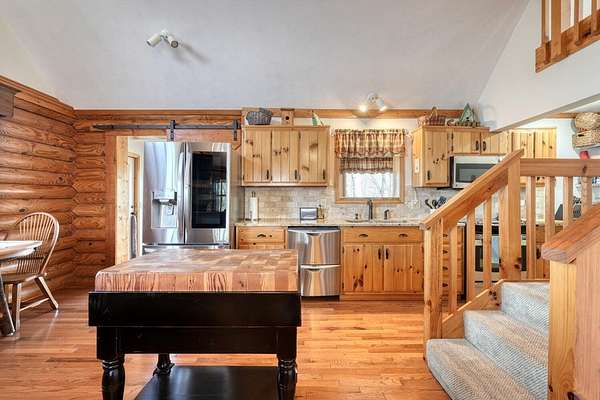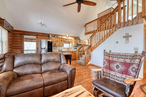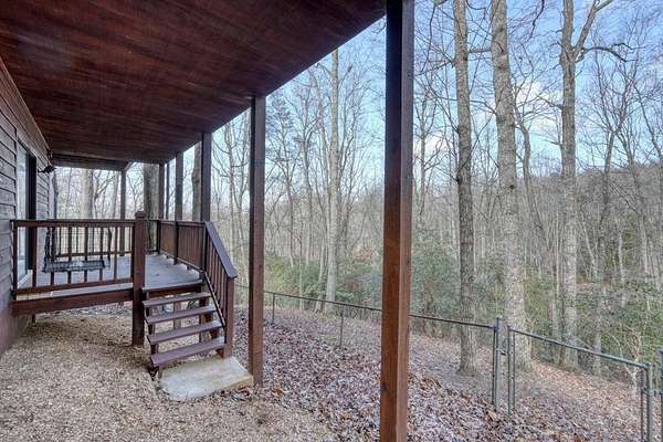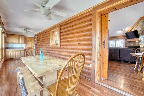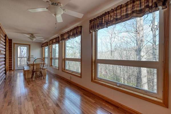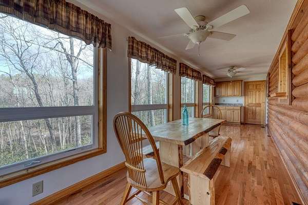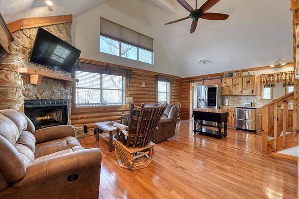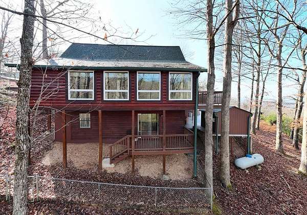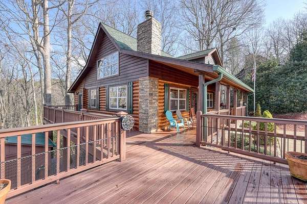 Escape to the mountains in this beautifully furnished 3bed/3bath log cabin with long range mountain views, perfectly perched on 2.42 acres on two lots--ensuring your mountain views remain protected or offering space to build an additional home. Step inside to vaulted ceilings and a cozy stone gas log fireplace, with the master suite conveniently located on the main level. The kitchen delights with granite countertops, stainless steel appliances, travertine backsplash, and a pantry. Unwind year-round in the 28-foot heated and cooled sun porch, to enjoy the wildlife, or step out to generous decks wrapping the front and side--ideal for morning coffee or evening gatherings. The lower level leads to your private hot tub. The lower level features a fun rec room complete with a 9-foot billiard table, bedroom with full bath. Recent updates in the past few years elevate this home: a newer roof and HVAC for peace of mind, a walk-in shower and fresh granite/fixtures in the baths, plus flooring including hardwoods on the main. Outdoor living shines with a new firepit area, fenced dog area, storage shed, paved driveways, and a workshop. Underground utilities. Whether you're searching for a weekend getaway, vacation rental, or forever home, this cabin delivers the tranquility and beauty of true mountain living. Short-term rentals are permitted (buyer to verify current regulations or changes). Furnished with exception of one small painting. Schedule your private appointment today!