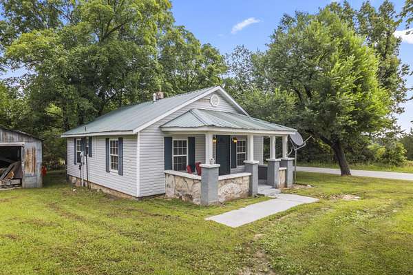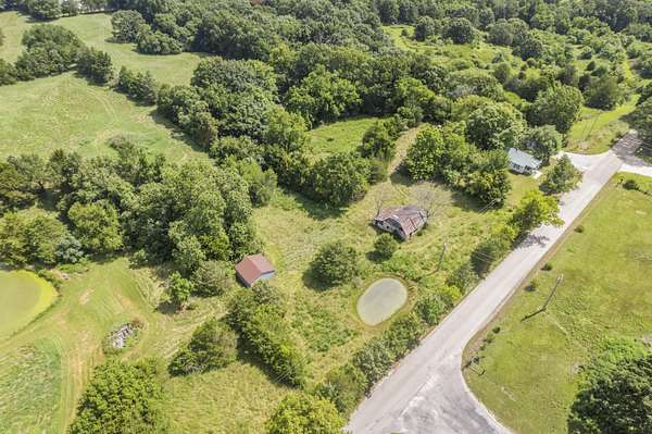 Step into the charm of yesteryear with this delightful one-bedroom home nestled on 2.7 peaceful acres. A welcoming front porch invites you into a warm and cozy living room, where natural light fills every corner. The primary bedroom offers a spacious retreat, complete with a walk-in closet and updated walk-in shower for modern comfort.Just off the living room, you'll find a bonus office space--perfect for working from home or easily used as a second non-conforming bedroom. The kitchen features newer appliances making daily routines feel a bit more special. This property is full of character and unique extras, including a pond, a classic well house with cellar for added storage or canning. Several outbuildings provide endless possibilities for hobbies, storage, or even small livestock. Enjoy your morning coffee on the deck or front porch surrounded by open space, mature trees, and nature's soundtrack. Whether you're seeking a peaceful retreat, a hobby farm, or simply room to roam, this one-of-a-kind home blends comfort and country living with timeless appeal. Just one mile off Hwy 160 with easy access to both Springfield and Branson.