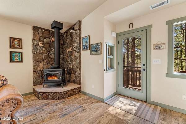 This wonderful craftsman cottage sits on 5 heavily treed acres. The home is a 2bd 1ba and looks BRAND NEW! It is gently used and so well cared for. Finishes include Knotty Alder cabinets, granite countertops, Malpais & Flagstone woodstove surround, flooring includes carpet and beautiful and durable wood look ceramic tile. The woodstove is perfect for ambiance and adds to your comfort in winter. At a cool 7,000 ft of elevation this home is perfect for summer enjoyment and AC should you prefer. The garage is oversized 30x34 with electric heater and a epoxy floor. The exterior of the home is Malpais and LP 50-yr Smartsiding (continued with more) Picture yourself in the delight community of Parks surrounded by thousands of acres of Kaibab Forest Service land. Enjoy all that Northern Arizona has to offer whether that's hiking, camping, skiing, sightseeing, hunting or just relaxing!