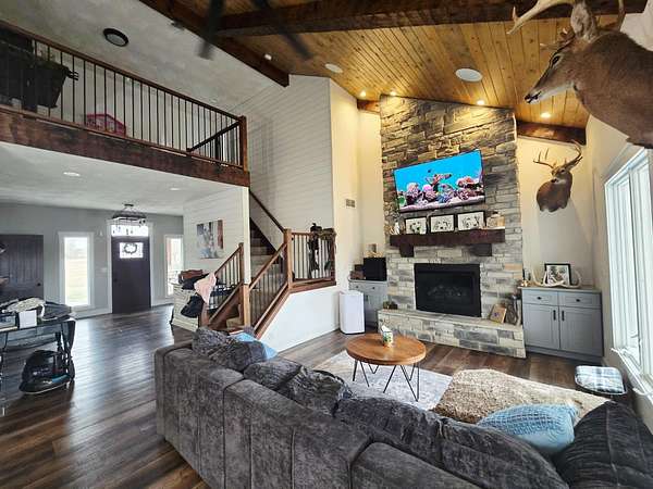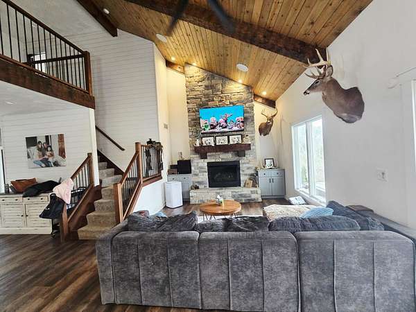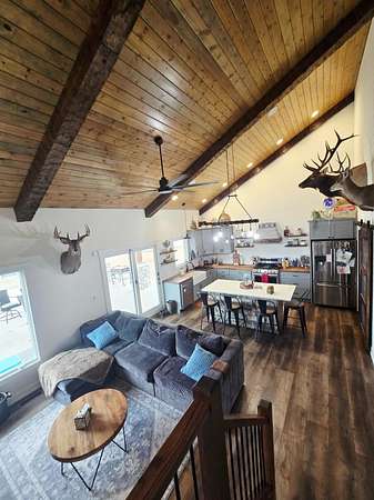 Escape to your own private retreat with this stunning 3-bedroom, 2.5-bath home that sets on 65.09 acres of pure seclusion at the end of a dead-end road. Designed for both comfort and recreation, the home features surround sound throughout the interior and patio, creating the perfect setting for entertaining or relaxing. Step outside to enjoy the expansive patio with firepit, hot tub, and galvanized pool, all overlooking outstanding panoramic views. The property is a hunter's dream with abundant wildlife, wide-open space, and unmatched privacy. Additional highlights include a large pole barn, a 2-acre underground dog fence, and a kids' playset making this exceptional property ideal for full-time living, weekend escapes, or a legacy getaway. Once in a lifetime opportunity!