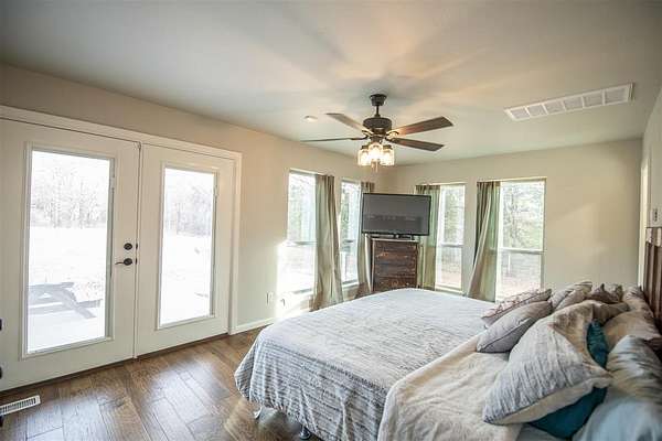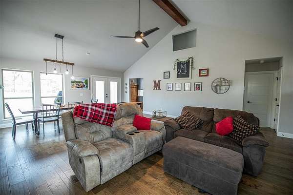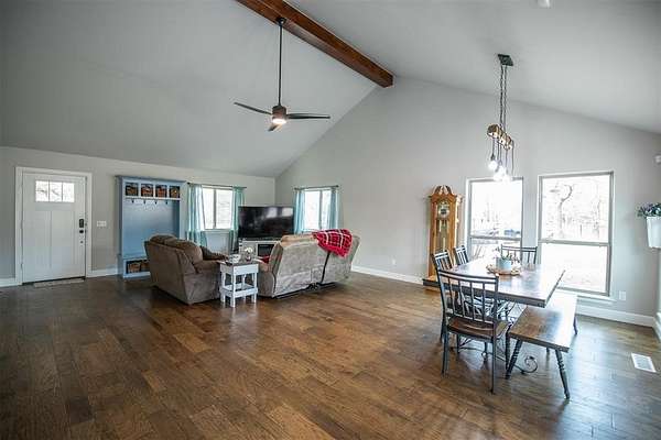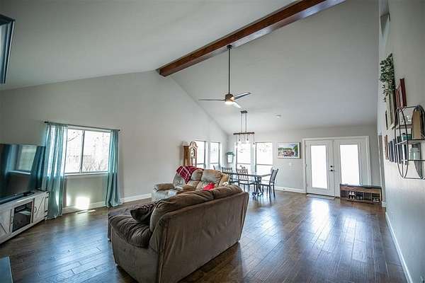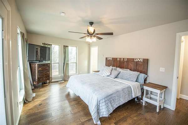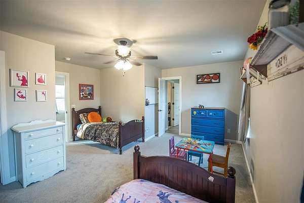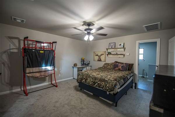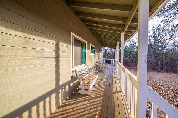 Welcome home to this spacious 4-bedroom, 3 full-bath, two-story retreat nestled on 2 beautiful acres, offering the best of peaceful country living with convenient access to town. Ideally located just minutes from I-35 and perfectly positioned between Guthrie and Edmond, this home provides both tranquility and an easy commute. The thoughtfully designed layout features a spacious primary bedroom and ensuite bath on the main level, along with a guest bedroom with a full bath downstairs, making it ideal for visitors or multi-generational living. Updated amenities and appliances are found throughout the home. Enjoy inviting outdoor spaces including a covered front porch and private back patio, perfect for relaxing and taking in the serene surroundings. The kitchen's large windows overlook the patio and expansive backyard, filling the space with natural light and scenic views. Upstairs, a large common room connects two additional bedrooms and a full bath, offering flexible space for a playroom, media room, or family gathering area. A detached garage/shop adds exceptional functionality. With ample indoor and outdoor space, this property is perfect for a large family seeking comfort, privacy, and the balance of country living with city convenience.