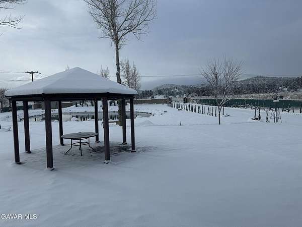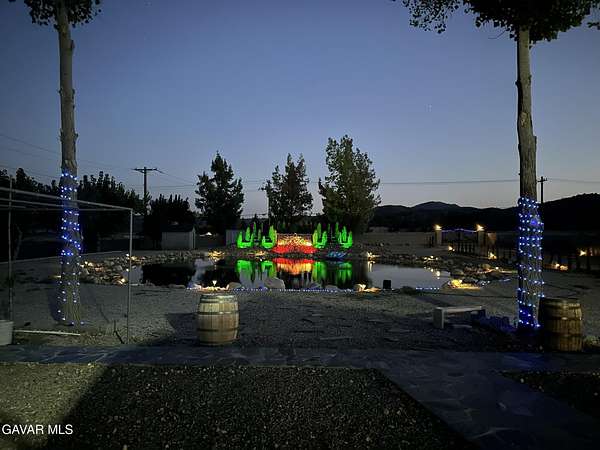 Welcome to this exceptional Lockwood Valley estate in Frazier Park, offering the perfect balance of privacy, space, and natural beauty. Nestled on 2.39 fully fenced acres, this 4-bedroom, 4-bathroom home spans 3,222 sq ft and has been immaculately improved and maintained, ensuring a move-in ready experience.The property features an automatic gated entry and a long driveway leading to outstanding garage space, including five single-car garages, a large RV garage, and a detached workshop. A functioning water well provides reliable water access, adding significant value and self-sufficiency.One of the standout features of this estate is the expansive 75' x 75' pond, stocked with koi and catfish, complete with a rock waterfall and a central fountain. Mature and newly planted trees accent the grounds, creating a peaceful and picturesque setting. A front seating area with a gazebo offers a perfect spot to relax and enjoy the stunning mountain views, which are particularly breathtaking in the winter months when the scenery is transformed by snow-capped landscapes.Inside, the home exudes warmth and comfort with two spacious living rooms and a large kitchen ideal for entertaining and family gatherings. The three additional bedrooms are generously sized, making them perfect for family or guests. Two hallway bathrooms with full baths provide convenience, while the primary suite offers a luxurious retreat with a separate tub, shower, and double vanity. Ample storage throughout ensures both functionality and comfort.In addition to its serene setting, the property enjoys easy access to town for shopping, dining, and everyday amenities, and the 5 Freeway is conveniently reachable, providing a balance of seclusion and convenience.This property truly embodies the essence of Lockwood Valley living with wide-open spaces, natural beauty, thoughtfully planned amenities, and reliable utilities. Don't miss the opportunity to make this extraordinary estate your own!