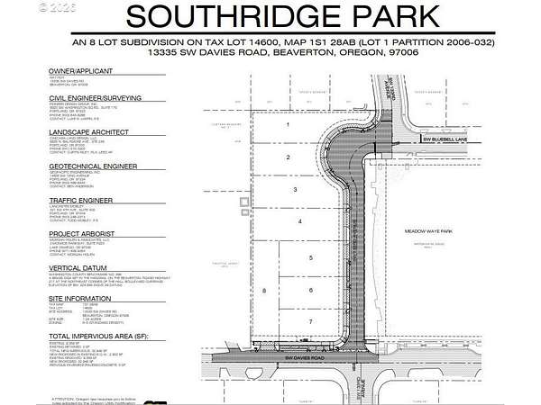 Great opportunity for 8 (eight) lots, most all facing and adjacent Meadow Way city park (see plat in pictures). Value is in the 1.24 acre lot with extra deep lots facing the park. Also a possibility of doubling lots in a middle housing project. House is a cosmetic fixer. The site has been approved by the City for 8-lots facing Speers-Meadows Park. Final Engineering is complete and the site development permit is ready to begin work. Site plans and engineering details can be provided upon request. Buyer to perform own due diligence. House also works as a single family home with down-the-road value, with a huge shop, large storage sheds, RV parking, even an active irrigation well. Site is also 1/2 a block away from 30 acre Hyland natural park. A great opportunity to develop now, or hold for down the road.