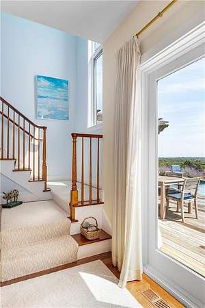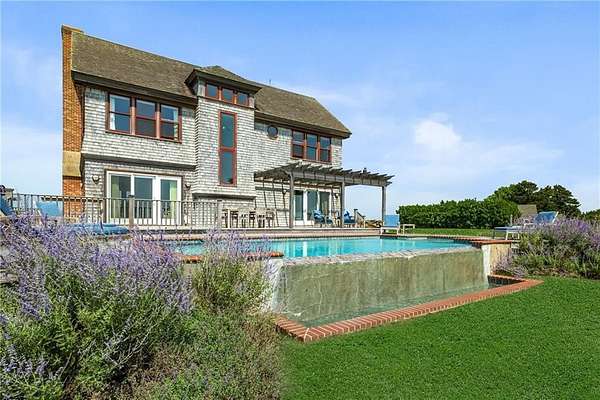 This residence at 1328 Cooneymus Road is part of the storied Lewis Farm, a property woven into Block Island's conservation history. In 1982, William P. Lewis II, whose family had farmed this land since the early 1800s, made the extraordinary decision to protect over 150 acres for preservation. His vision, supported by conservation groups and the State of Rhode Island, ensured this extraordinary landscape of meadows, stone walls, and dramatic ocean views would be safeguarded for future generations. Today, the home embodies that legacy. Set within this conserved expanse, the 4-bedroom, 4.5-bath residence offers sweeping views across rolling fields to the Atlantic Ocean. Designed in the Island's timeless shingle style, it features expansive windows and porches that bring the outdoors in, along with a pool and deck perfectly positioned for the western light and spectacular sunsets that define this part of Block Island. Inside, open living spaces and thoughtful architectural details create a home as inviting as its surroundings. A guest cottage and 4-car garage provide extra accommodations and ample space for your Island essentials. Ownership here means not only enjoying privacy and natural beauty but also becoming part of the enduring story of Lewis Farm--a place where history, conservation, and community converge. The conservation easement ensures the land's character remains unspoiled, preserving the pastoral landscape that makes this property one of the Island's most treasured.
