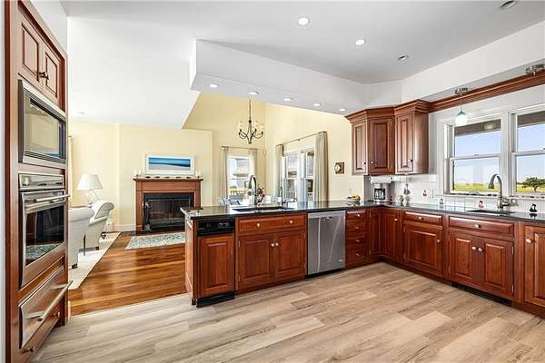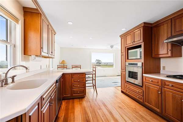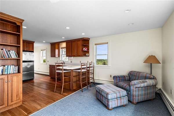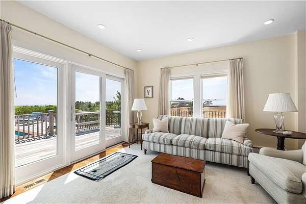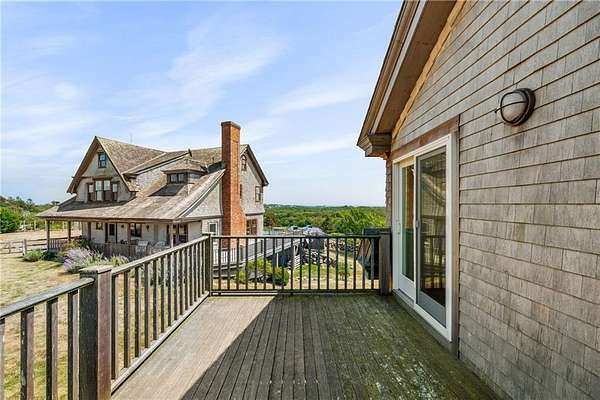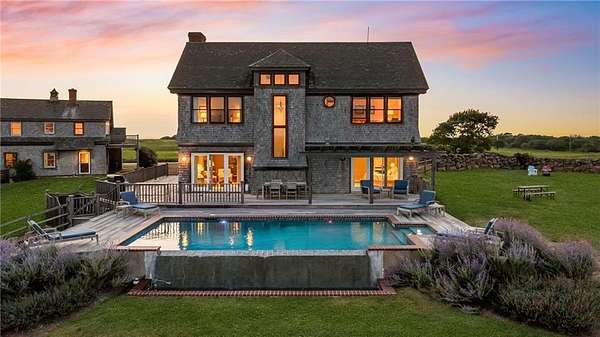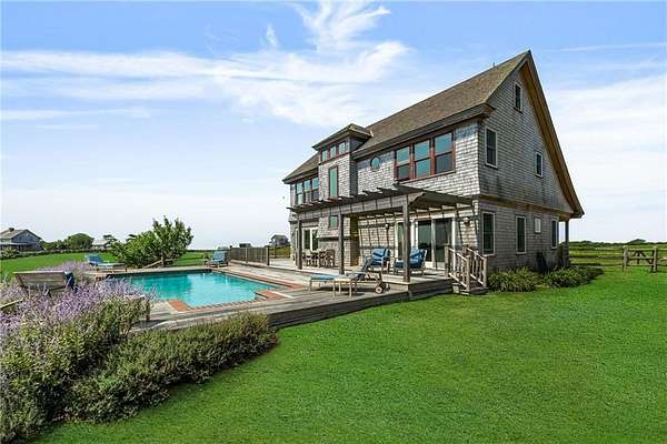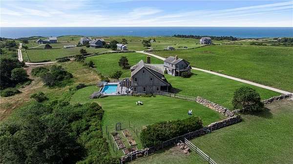 This residence at 1328 Cooneymus Road is part of the storied Lewis Farm, a property woven into Block Island's conservation history. In 1982, William P. Lewis II, whose family had farmed this land since the early 1800s, made the extraordinary decision to protect over 150 acres for preservation. His vision, supported by conservation groups and the State of Rhode Island, ensured this extraordinary landscape of meadows, stone walls, and dramatic ocean views would be safeguarded for future generations. Today, the home embodies that legacy. Set within this conserved expanse, the 4-bedroom, 4.5-bath residence offers sweeping views across rolling fields to the Atlantic Ocean. Designed in the Island's timeless shingle style, it features expansive windows and porches that bring the outdoors in, along with a pool and deck perfectly positioned for the western light and spectacular sunsets that define this part of Block Island. Inside, open living spaces and thoughtful architectural details create a home as inviting as its surroundings. A guest cottage and 4-car garage provide extra accommodations and ample space for your Island essentials. Ownership here means not only enjoying privacy and natural beauty but also becoming part of the enduring story of Lewis Farm-a place where history, conservation, and community converge. The conservation easement ensures the land's character remains unspoiled, preserving the pastoral landscape that makes this property one of the Island's most treasured.