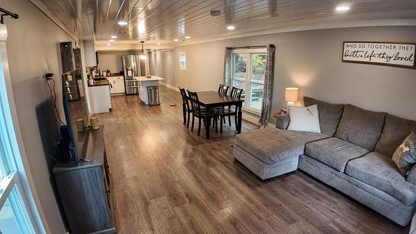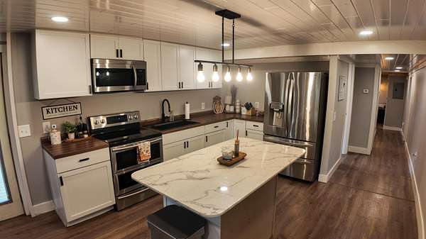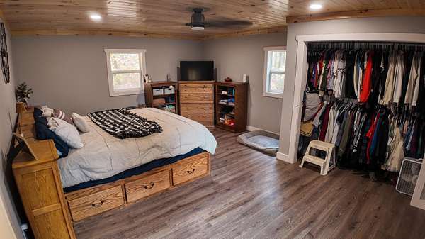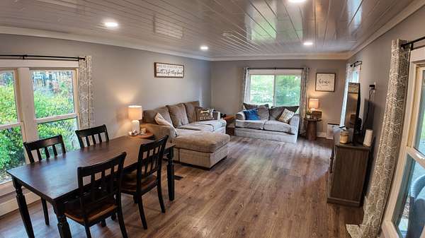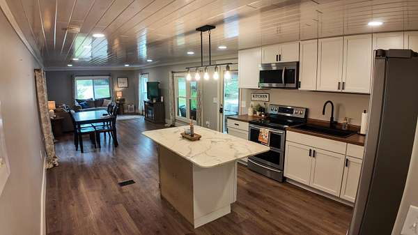 Completely renovated from the inside and out, this 2-bedroom, 1-bath home sits on 5 wooded acres between Big Rapids and Canadian Lakes-giving you quick access to both communities for shopping, dining, and entertainment. The property offers plenty of space for outdoor activities, gardening, or simply enjoying nature in total privacy. Inside, enjoy stainless steel appliances with modern countertops. New drywall, flooring, tongue and groove ceilings, light fixtures, water heater, and a full 200-amp electrical upgrade. Outside, a new porch and a brand-new 50x30 insulated pole barn with three 10x10 doors and its own 200-amp service provides endless storage or workspace, plus a detached 2-car garage with opener. Just under a mile up the road, you'll find a local gas station and general store offering gas, rec fuel, off-road diesel, drinks, snacks, and cooked meals. Surrounded by several all-sports lakes minutes away, this move-in-ready home blends modern comfort with peaceful country living