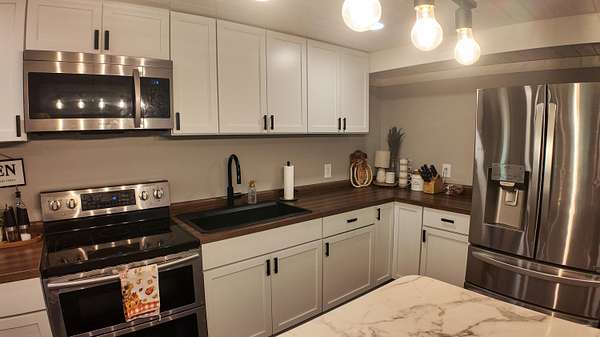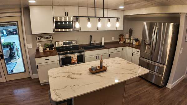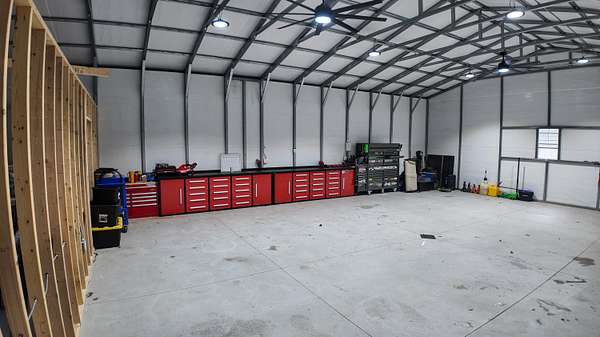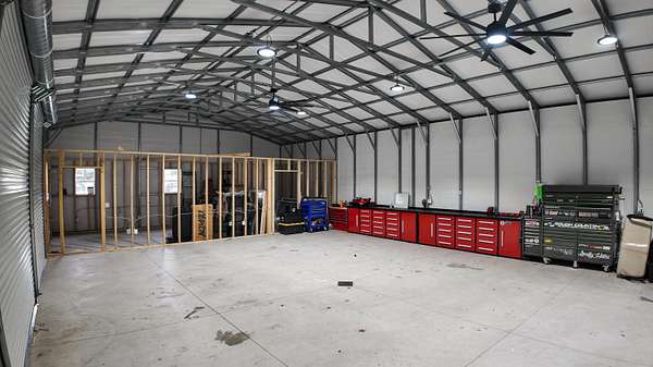 - Ceiling Fan(s), Center Island, Garage Door Opener, LP Tank Rented