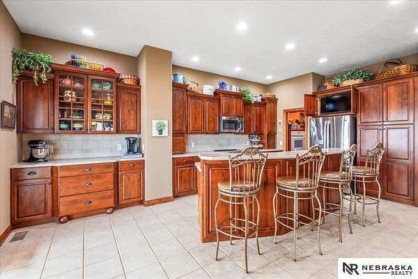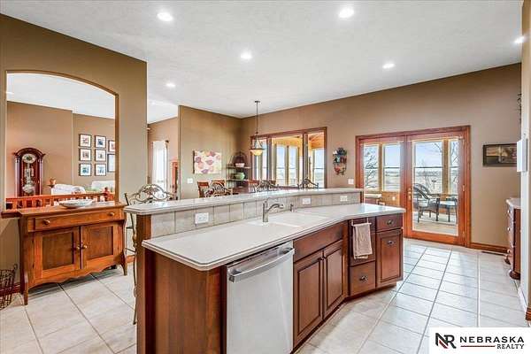 Janette Nielsen, M: 402-669-9675, j.nielsen@nebraskarealty.com, https://www.nebraskarealty.com - Open skies & relaxed country vibes. Don't miss this solid, meticulously maintained ranch nestled on 3.79 breathtaking acres. Soak in endless panoramic views from the stunning cedar 3-season room featuring soaring vaulted ceilings. The spacious primary suite boasts a spa-inspired bath designed for relaxation. Main-floor office doubles as an optional conforming 4th bedroom, offering flexibility for any lifestyle. Discover a wide-open basement built for entertaining - cozy up in the living room, belly up to the bar complete with full-size refrigerator & dishwasher, or challenge friends in the oversized rec room with ample space for a pool or game tables. Two additional bedrooms, a full bath, dedicated storm shelter & generous storage round out this incredible lower level. Pole barn with a 14' overhead door will accommodate your RV or toys, a perfect workshop. Established garden beds & sweet