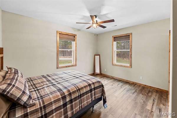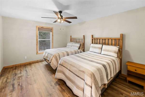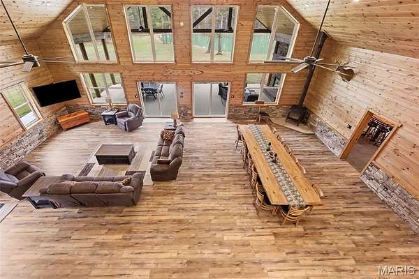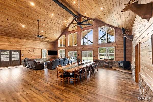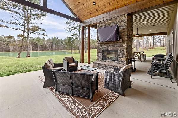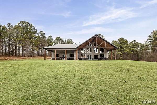 A private one-third-mile drive through a secure gated entrance leads to a newly constructed two-story 4,500 sq. ft. lodge designed for comfort and entertainment. The lodge includes 8 bedrooms (sleeping up to 14), 3 bathrooms, a bar and entertainment room, hunting/recreation space, walk-in deer cooler, and a 35’ x 35’ garage. Two indoor wood-burning fireplaces and a 1,300 sq. ft. covered patio with outdoor fireplace overlook a newly built 2-acre lake. Despite the secluded setting, the property offers city water, strong internet, and reliable cell service.