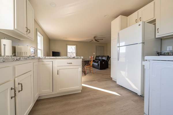 Adorable home with 10 acres, built in 2024 and features a large covered front porch, small barn and outbuilding. The cozy 2-bed, 1-bath 960 sq. ft. home boasts an extremely efficient layout. The well proportioned kitchen includes new appliances and beautiful kitchen cabinets, open concept living room with LVN flooring throughout main areas of the home.Utility/laundry room(washer & dryer included) is located just off the kitchen and has back door entrance with small back porch. The 2 spacious bedrooms are carpeted and the primary bedroom has a large walk-in closet! The centrally located bath features walk-in shower and a vanity linen cabinet. The 10 acres includes open pasture land and woodlands with a small barn and outbuilding. Road frontage on Hwy. 206(Liberty road) as well as frontage on Eunice Dunnville Rd. on the back of property. The open land is level and the woodlands are rolling hills, sloping down to the small stream. Just down the road is the Green river and access to the Green River Lake Wild Like Management Area; 21,000 acres of public land you can hunt, fish, hike, boat and trail ride on just minutes away! Call today to view this almost new home with acreage!