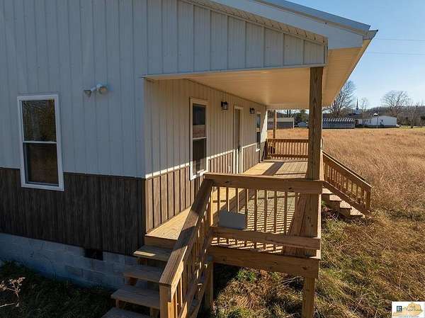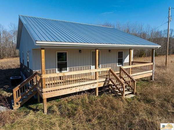 Cabin with barn on 10 acres! Located within 20 minutes of Columbia, Russell Springs and Liberty. Adorable home with 10 acres, built in 2024, featuring a large covered front porch, small barn and outbuilding. The cozy 2-bed, 1-bath 960 sq. ft. home boasts an extremely efficient layout. The well proportioned kitchen includes new appliances and beautiful kitchen cabinets, open concept living room with LVN flooring throughout main areas of the home. Utility/laundry room(washer & dryer included) is located just off the kitchen and has back door entrance with small back porch. The 2 spacious bedrooms are carpeted and the primary bedroom has a large walk-in closet! The centrally located bath features walk-in shower and a vanity with builtin linen cabinet. The 10 acres includes open pasture land and woodlands with a small barn and outbuilding. Road frontage on KY-206 (Liberty road) as well as frontage on Eunice Dunnville Rd. on the back of property. The open land is level and the woodlands are rolling hills, sloping down to the small stream. Just down the road is the Green River and access to the Green River Lake WMA (Wildlife Management Area); 21,000 acres of public land and water owned by the U.S. Army Corps of Engineers. It features extensive hunting (deer, turkey & waterfowl) fishing, boating and is managed by KY Dept. of Fish and Wildlife Resources. Public land you can hunt, fish, hike, boat and trail ride on just minutes away! Call today to view this almost new home with acreage!