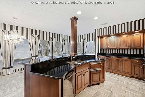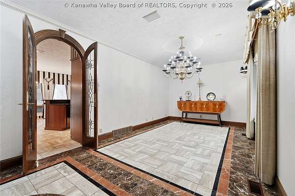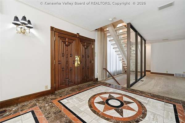 Welcome to this iconic waterfront estate where vintage drama and mountain serenity collide. A grand circular drive with brick accents sets the tone before you even step inside. This architectural standout delivers over 3,000 sq ft of bold design - expansive windows, glass interior walls, timeless chandeliers, and a striking floating staircase that feels straight out of a classic film set. Two luxe primary suites with private balconies. A sunroom perched above the Coal River. A gated courtyard leads to your inground pool and two-story pool house, all framed by sweeping river views and lush Appalachian landscape. Dramatic. Refined. Unapologetically unique. This isn't just a home - it's a statement.