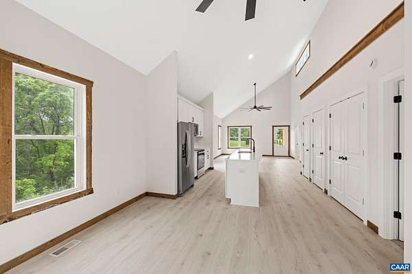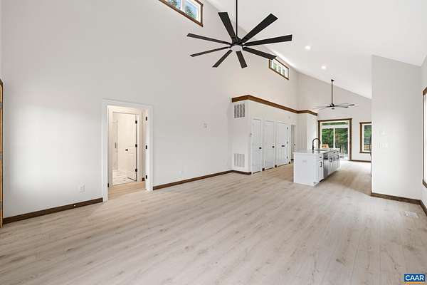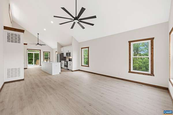 This newly constructed One of a Kind, jaw dropping contemporary country home offers a harmonious blend of modern design and natural surroundings. Nestled on a 2.6-acre lot with scenic views of the Rivanna River, the property provides both tranquility and convenience.. Nestled in the heart of historic Palmyra this expansive property is more than just a home--it's a canvas for your dreams, offering unmatched privacy and endless possibilities. Sliding doors off dining room lead to a rear deck with wooded views over the Rivanna River. Perfectly positioned with easy access to Charlottesville and Richmond,. Minutes from Lake Monticello, wineries, Rivanna and James River adventures and all the beauty Central Virginia has to offer. This home offers 1st floor living, Open floor plan, Vaulted ceilings, a Full terrace level finished basement with 4th bedroom/sunny office and 1/2 bath. Expansive outdoor living space via the 1000 sq' patio perfect for relaxation and large gatherings. All appliances including: washer/dryer. 12" foundation with structural insulation panels. This exceptional home combines quality craftsmanship with thoughtful design.