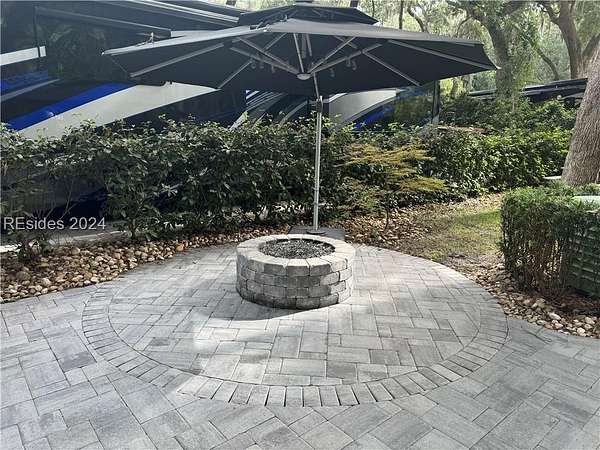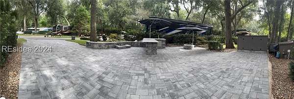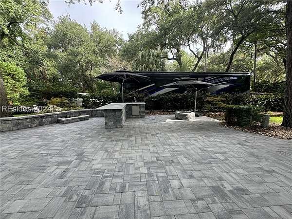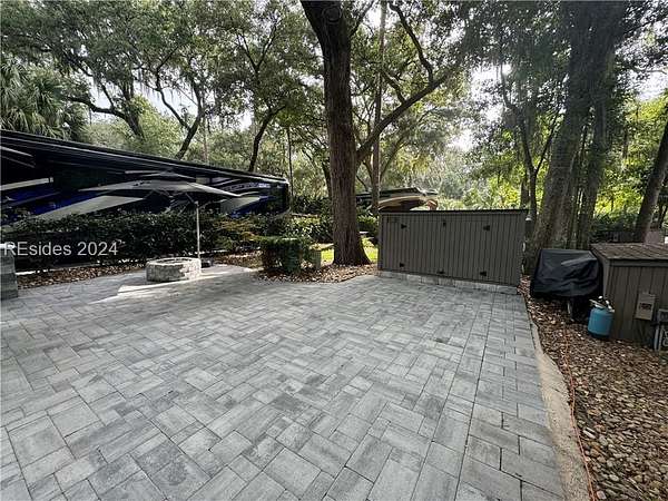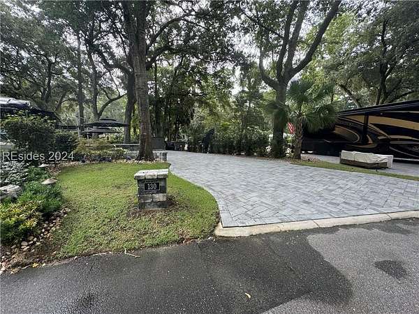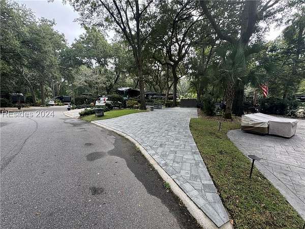 This beautifully renovated LARGE RV Lot is loaded with extras! Enjoy the outdoor kitchen and calming water feature and a built-in fire pit all on a paver pad that can accommodate any size coach with 2 vehicles.Lot 130 is conveniently located near all of the resort's amenities in highly sought after phase III section of the resort. The new large storage shed, fire pit and all umbrellas will convey with the property. HHIMR is a luxury RV resort consisting of 50 acres of woodland setting accented with lush landscaping settled in the heart of Hilton Head Island and is a short bike ride to Coligny Beach, restaurants and shopping.