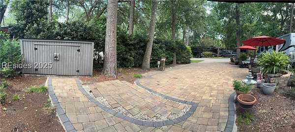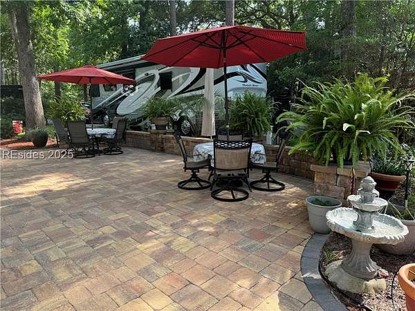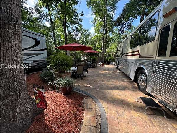Est $1,670/moThis gorgeous RV lot has a paver pad with a hardscape wall and can accommodate a 45' coach with 2 vehicles.Two tables with 4 chairs each and umbrellas, a cantiliever umbrella, shed and the beautiful potted plants will convey with the lot. Hilton Head Island Motorcoach Resort is a luxury resort consisting of 50 acres of woodland setting accented lush landscaping and designed for the convenience and enjoyment of Motorcoaches only. HHIMR amenities include tennis courts, pickle ball, shuffleboard, pool, hot tub, clubhouse, laundry facilities, fitness center, basketball courts, playground, dog park, Wi-Fi, cable, and daily trash pickup