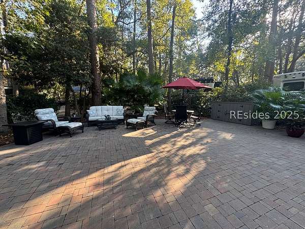 BEAUTIFUL EASY ACCESS Corner Luxury RV Lot #88 is now on the market. This paver pad can accommodate a 45' coach and 2 vehicles and has excellent rental potential. The lot was rennovated in 2022 with beautiful fresh pavers and comes complete with irrigation, landscape lighting, and a storage shed. Gorgous Palm Casual furniture will convey with the lot (sofa with cushions, 2 matching chairs with ottomans, coffee table, 2 side tables, dining set with 4 high-back chairs, table with lazy Susan and an umbrella). Hilton Head Island Motorcoach Resort is located in the heart of Hilton Head Island and is a luxury RV resort designed for the conveneniences and enjoyment of class A, C and Super C Motorcoaches only. The resort consists of 50 acres of woodland and lush landscape setting accented with live oaks dripping with Spanish Moss, palms trees, ferns and flowering shrubs. The resorts amendities include tennis courts, pickle ball, shuffleboard, swimming pool, hot tub, clubhouse, laundry facilities, fitness center, basketball courts, playground, dog park, Wi-Fi, cable, daily trash pickup, lawn maintenance, water & sewer. Hilton Head Island Motorcoach Resort is a short bike ride to Coligny Beach, restaurants and island shopping.