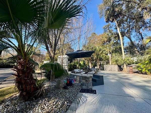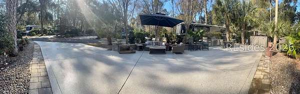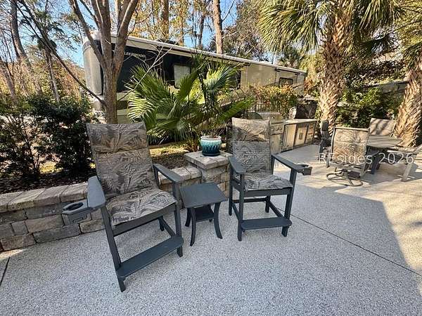 SPECTACTULAR RV Lot 140 is now on the market. This unique lot has a concrete pad with a durable easy-maintance epoxy coating, and can accomodate coaches up to 45' and two vehicles. The lot is well equipped with an gorgous outdoor kitchen, dining table for 6, sofa with cushions and matching sitting chair, 2 high-top chairs, coffee table and 2 two end tables, large cantiliever umbrella, newer storage shed, irrigation and landscape lighting. Don't miss this opportunity to own this slice of paradise. Hilton Head Island Motorcoach Resort is located in the heart of Hilton Head Island and is a luxury RV resort designed for the conveniences and enjoyment of class A, C andSuper C Motorcoaches only. The resort consists of 50 acres of woodland and lush landscape setting accented with live oaks dripping withSpanish Moss, palms trees, ferns and flowering shrubs. The resorts amenities include tennis courts, pickle ball, shuffleboard, swimming pool,hot tub, clubhouse, laundry facilities, fitness center, basketball courts, playground, dog park, Wi-Fi, cable, daily trash pickup, lawn maintenance,water & sewer. Hilton Head Island Motorcoach Resort is a short bike ride to Coligny Beach, restaurants and island shopping.