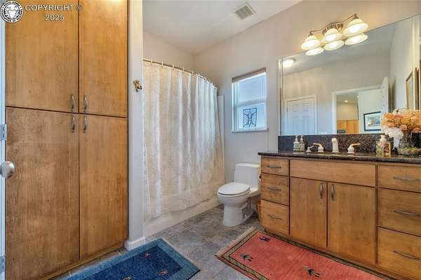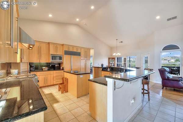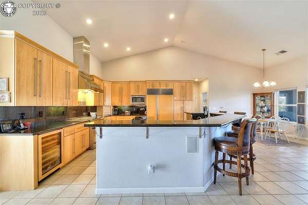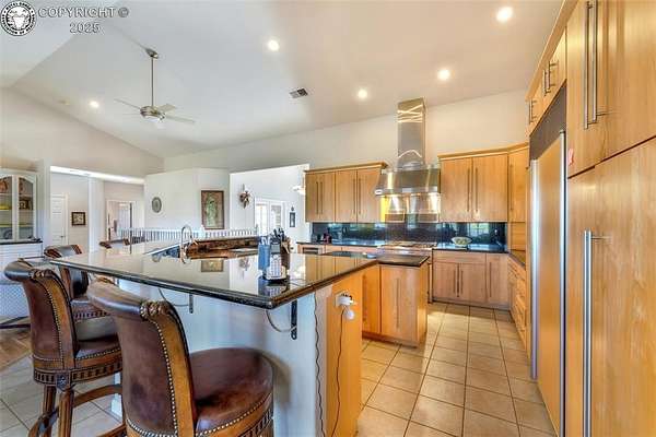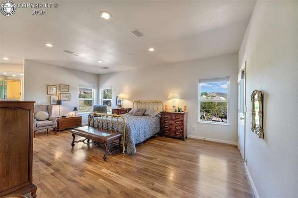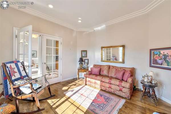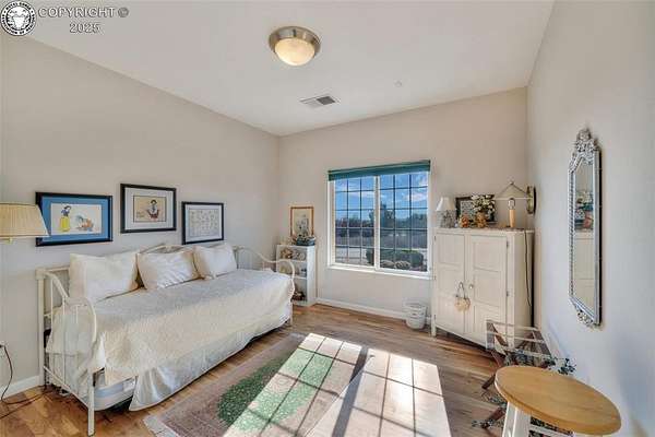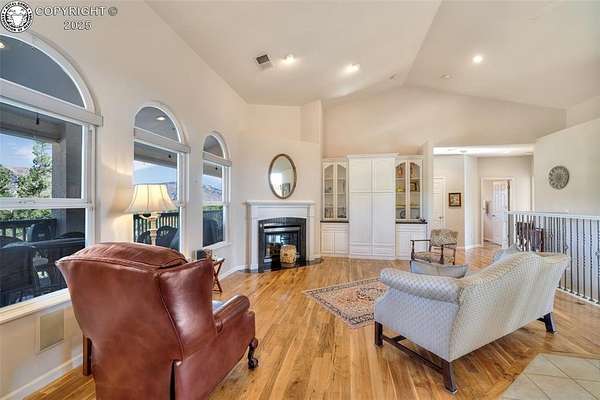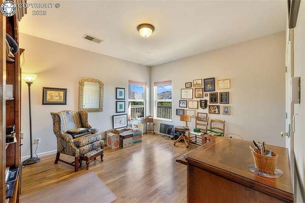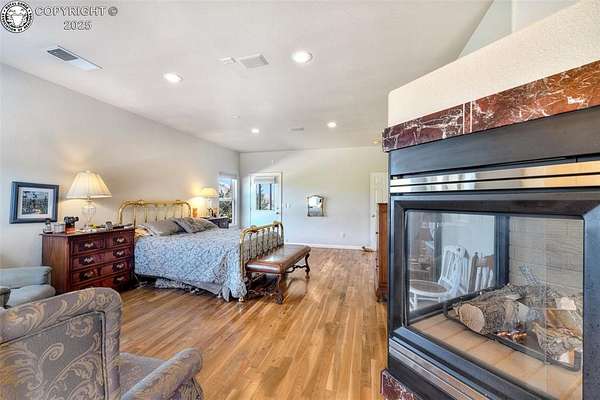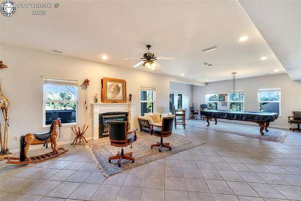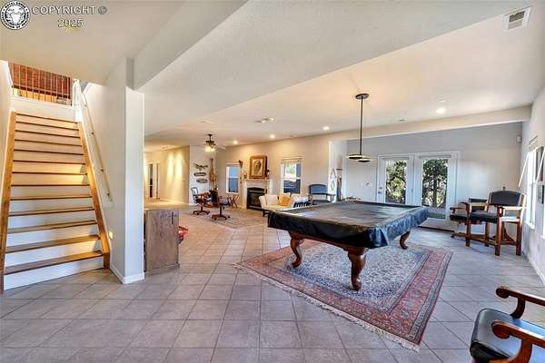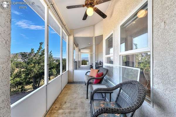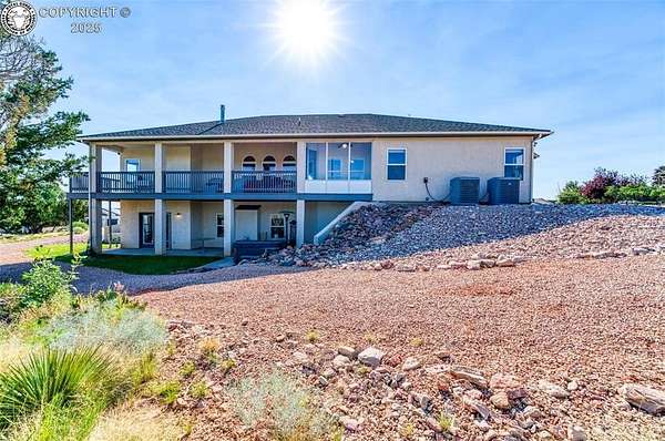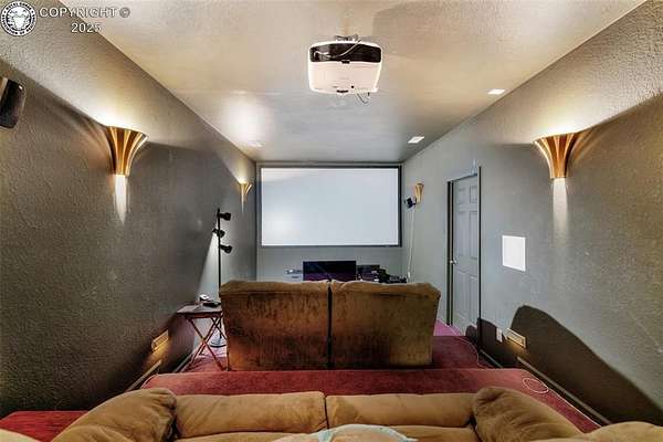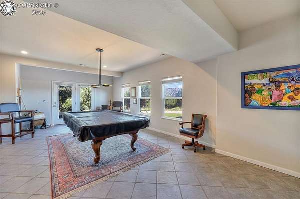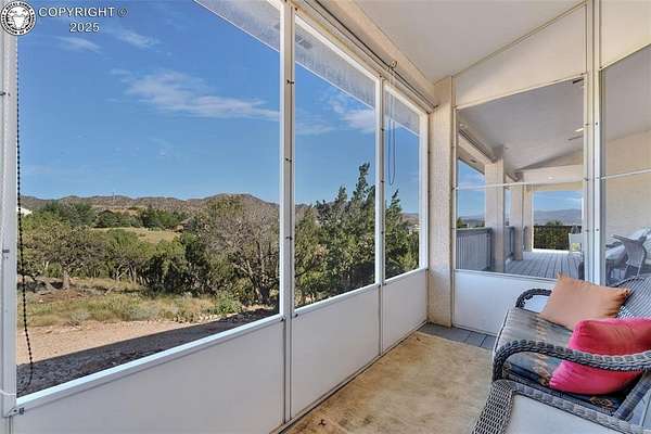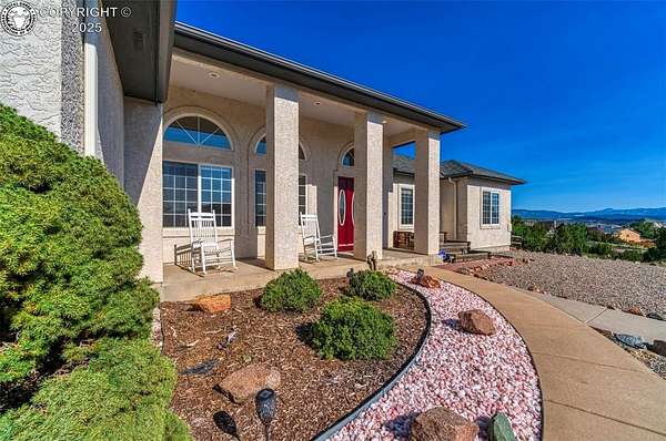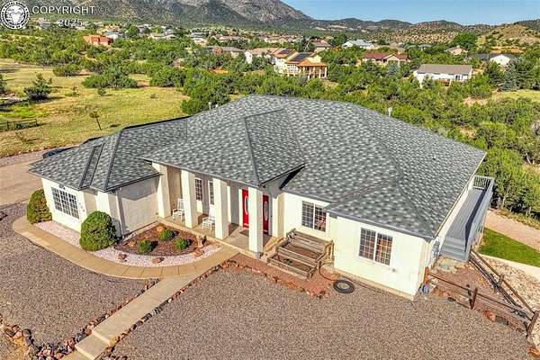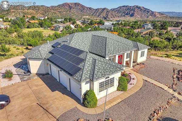 This incredible custom home in beautiful Dawson Ranch is perfect for a large family, offering 5,114 sq ft of luxurious living space with 5 bedrooms, 3 baths, a 3-car garage, and 3 fireplaces, all nestled on 1.52 acres with stunning mountain views. The gourmet kitchen is a chef's dream, featuring custom cabinetry, granite countertops, a Thermador range, Sub-Zero refrigerator, wine cooler, and a breakfast bar that seats six. Rich walnut floors and large windows fill the living room with natural light, while the built-in shelves and gas fireplace create a warm, inviting atmosphere. The spacious primary suite, just off the kitchen, opens to a screened-in, covered deck-an ideal retreat for reading or relaxing. The ensuite bath includes double sinks, a soaking tub, walk-in glass block shower, and a large walk-in closet. Two additional bedrooms, a full bath, an office/TV room, and a formal dining room complete the main level. Down the walnut staircase, the expansive lower level boasts a massive rec room with a pool table, fireplace, wet bar (including its own beer-on-tap fridge), a multi-level home theater, a craft room, a full bath, an office, and a unique octagon-shaped bedroom. Walk out to the private hot tub and enjoy the Colorado night skies. With solar panels on the durable 50-year corrugated metal roof, this stunning home offers both luxury and energy efficiency-an exceptional value you'll want to see in person!