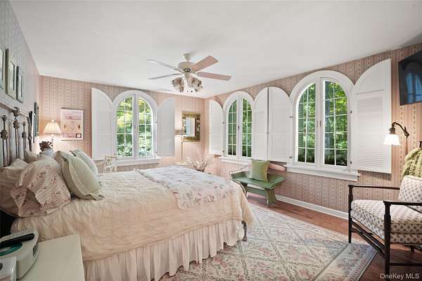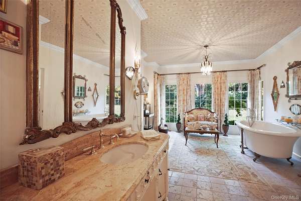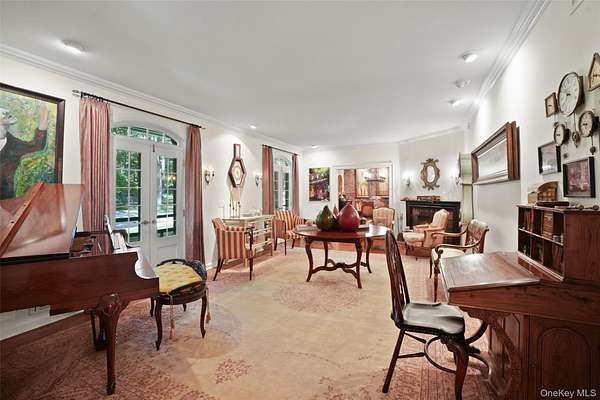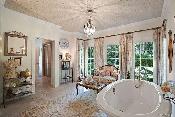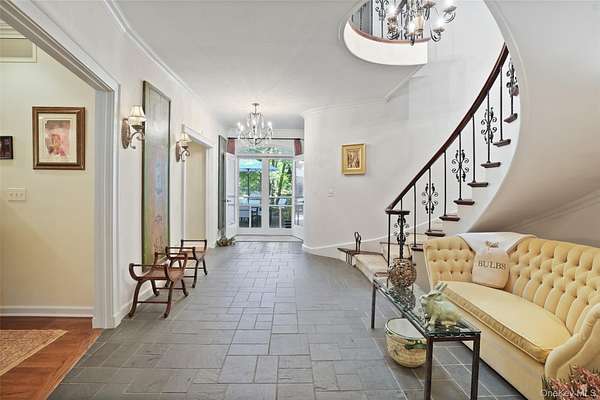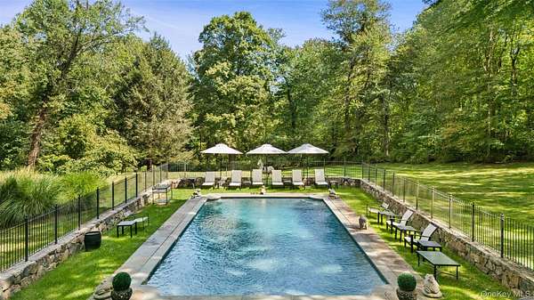 The Quintessential Getaway. Long, gated drive through spectacular grounds to ultimate privacy and seclusion. Twenty glorious acres with level lawns, ancient trees, ornamental shrubs and flowering perennials. Fenced grounds with woodland walking trails throughout. Absolutely breathtaking backdrop for the perfect country lifestyle. Fabulous raised terrace overlooking the stunning swimming pool. Basketball, volleyball, tetherball and zip-lining add to the fun. Room for tennis court. Exceptional Country House with a distinctive southern flair. Fashioned after Mississippi's "The Mansion of a Thousand Candles" with French doors opening to balconies and porches on both floors. Warm and welcoming interior spaces with graciously proportioned rooms. True Center Entrance Hall. Formal Living and Dining Rooms for entertaining. Chef's Kitchen and Family Room with doors to terrace for comfortable every day living. Choice of Offices for working remotely. Game Room and Playroom/Gym. First Floor Primary Suite with opulent Bath. Five additional Bedrooms offering ample room for family and friends. Every amenity and an incredible offering!
