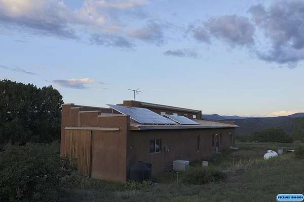Here is a beautiful home in a beautiful spot. Remote, private, quiet and dark night skies! This home sits at the end of LS Mesa looking off into Bear Creek. The Mogollon Mountains create the northern backdrop. 59.9 acres of land with pinon, and juniper trees. This off grid solar home has a backup propane generator. There are 2 bedrooms and 2 baths with an open floorplan. The home is heated with radiant heat. it is situated just right for the sun to help in the heating. The many Pella windows allow the beauty of the outdoors inside the home as well as adding a lot of natural light. Three covered stalls with a tack room and hay storage are in place if you have horses. The Gila National Forest is the boarder to the east and New Mexico State Land is the northern border. Property has a brand new state of the art solar system! Upgraded, move in ready system!!