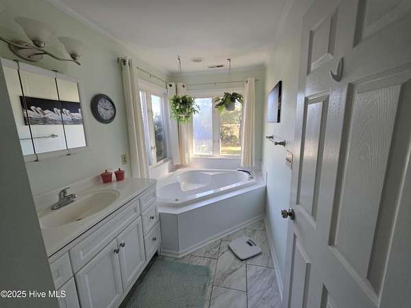 Beautiful 3 bedroom, 2 bath house with one car garage, located on Jonaquins Creek. This house is locate in an established neighborhood on a lot that backs up to the canal at Cummins Creek. Cummins Creek flows into Adams Creek. From Adams Creek it is a short way to the AICW. Not only can you park your boat at the private dock, it gives you a nice place to sit and relax at days end. If you don't want to sit on the dock the covered back porch offers you some shade and comfortable seating. The back yard is fenced in except for were the yard meets the marsh. There is a master bedroom suite. This suite has a large window looking over the back yard. There is lots of closet space and a magnificent bathroom. The bathroom has 3 sections. The first has a large counter top sink, and garden tub, next comes your stand up shower. The last is a sink and toilet with a door that opens into the garage. You can come in hot and sweaty and go straight into the bathroom to get cleaned up without tracking through the house. The kitchen is bright an airy. Appliances are less than four years old. It has a informal eating area in the kitchen with a great view of the water. There is also a large formal dining area. The living room has built in book shelves beside the non-useable fireplace. You can exit the house and get to the large back porch and deck through the glass doors in the living room. There also and office/den that you can use to either relax or work. The two other bedrooms are bright and cheerful. They are separated by a bathroom that is conveniently located near the living room. This house also provides access to the near by boat ramp, that also includes a picknick area and dock. There is a whole house Generator that will automatically engage if you were ever to loose power. May have one small dog under 25 lbs. There is a near by boat ramp for the development. The shed that is on the lot is not accessible to the tenant.
