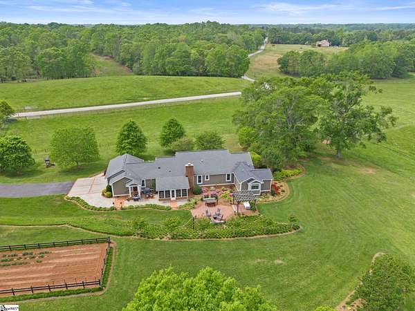 Unbelievable curb appeal and Immaculate home situated on approximately 31 picturesque acres in the heart of Southern Greenville County. This rare find features a 3 bedroom 2 1/2 bath with office and lovely sun room. The master suite features separate spacious, tiled shower and garden tub with his and her walk in closet. The family room features a wood burning fireplace with stove. The lovely brick patio area wiht lush landscaping is great for entertaining or relaxing. Other features not to be overlooked that makes this a such a wonderful property. Home has self-cleaning whole house filter. 30x30 (900 Sq. feet) barn with concrete floor and loft with 240 V power and water. There is an additional 2000 sq ft barn with gravel floor and 24 foot overhead door with 110V power. In addition a utility building is on the property with electric for yard utensil storage. Pastures are fenced and cross fenced with 5-strand high tensile wire and in-ground water for troughs. 3 creeks are on the property one on boundary, one passing across and one originating spring. Property also features a fenced area for vegetable/flower garden. Tax map numbers for property. 0587.03-01-002.02 and 0587.03-01-002.04 You do not want to miss this lovely property and everything it has. Additional property across the street is available for purchase. Buyer has option to purchase approximately 11 acres of property directly across road.