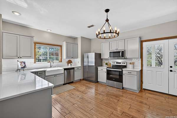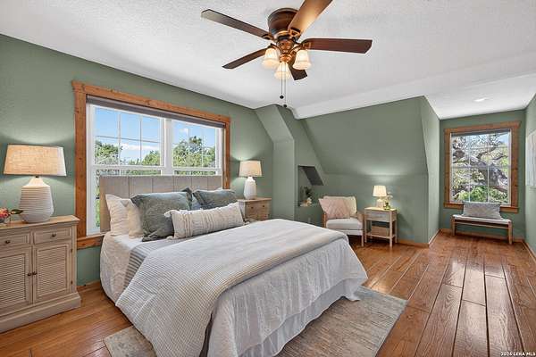 Peace and tranquility at the end of a quiet street in Southern Oaks, this 5-acre Hill Country retreat in Boerne, offers the kind of peace you can feel the moment you arrive. Mornings start slow with coffee on the porch under massive oak trees, and evenings are made for gathering, unwinding, and enjoying a glass of wine as the sun sets. The open, airy layout with high ceilings and natural light creates an inviting space to relax or entertain, while a spacious loft offers flexibility for work, hobbies, or additional living. The spacious bedrooms with beautiful large windows provides room to have some restful alone time. Designed for country living, the property features multiple fenced pastures, a horse barn with stables and tack room, and a gated entrance for added privacy - perfect for those wanting space to spread out and enjoy the outdoors. Located just minutes from I-10 and close to the charm of Comfort and the wineries of Fredericksburg, this property is ideal as a full-time home, weekend escape, or potential short-term rental. Experience the quiet, the space, and the lifestyle that make Hill Country living so special.