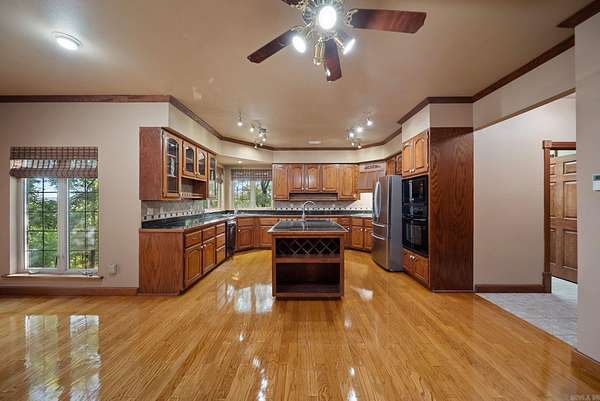 This spacious and elegant home offers two large living rooms, perfect for entertaining or creating separate relaxation spaces. With a bit of clearing, you could unlock breathtaking views from this peaceful retreat. Features include: 2 gas log fireplaces, 3 car garage, grand entryway with a spiral and formal staircase. Beautiful hardwood floors. Expansive kitchen with large island and pantry. Three full bathrooms plus a half bath. Bonus room, ideal for a home office, gym or playroom. Built-ins in the living room. Large deck, perfect for outdoor entertaining or relaxing. Abundant closet and storage space throughout. This home was custom built by the owner. Attention to detail and quality of construction went into this home from the start. Set on 3.39 acres of tree shaded land in a quiet established neighborhood. Private setting. This home blends luxury with privacy and space. Roof 5 years old. 220 amp service in garage. Refrigerator and Bar refrigerator stay. A rare find!