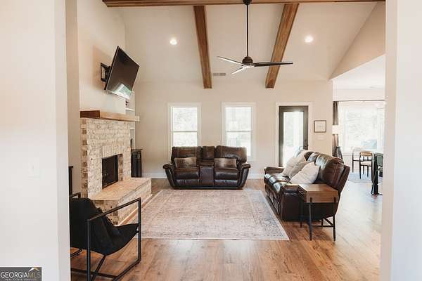 Welcome to 133 Mote Road in Carrollton, GA, situated on a beautifully maintained 4.03-acre lot. This 4-bedroom, 3.5-bath home features vaulted ceilings, custom built-ins, and quality finishes throughout. The main living areas are anchored by a wood-burning brick fireplace, adding warmth and character to the interior. The floor plan offers a spacious and practical layout, ideal for both everyday living and entertaining. Outdoor features include a fully fenced backyard and a heated saltwater gunite sport pool with a built-in hot tub, perfect for relaxing or hosting guests. A second wood-burning brick fireplace is located on the back patio, creating an ideal outdoor living space. The acreage provides a combination of privacy and usable land, with well-maintained grounds. A great opportunity to own a well-built home with land and desirable amenities in Carrollton. Please use ShowingTime for all showings. Showings by appointment only.