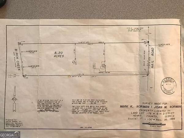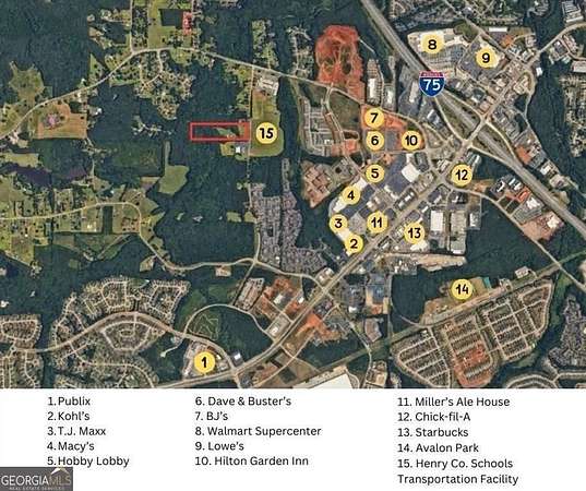 Property is located 1.5 miles from I-75 at exit 218. Perfect opportunity for residential development, this land is situated on 8.2 mostly flat acres with 300 ft. of road frontage just outside the city limits of quickly growing McDonough, GA. Possibility of up to 48 units with comps in the high 300s - low 400s. Henry County Future Land Use Map designates this property for "high-density suburban" development at up to 8 units per acre. Per Henry County 2023 approved Future Land Use Map, this property may be zoned for potential: R4: detached single-family residential dwellings that are either site-built or industrialized on lots. R5: Detached single-family residential dwellings that are either site-built or industrialized on lots, and/or horizontal multifamily and townhome developments, where appropriate. RD: Residential duplex district. RS: combination of two (2) of the following: single-family, duplex, or multifamily developments. County sewer accessible and on property completed in 2024. Nail Dr. roadway widened and repaved in May 2025. County Water, Cable, Electricity, Natural Gas, Phone, Sewer, Internet Fiber all available. Conveniently located 1/4 mile to South Pointe Mall shops, restaurants, and easy access to Hwy 20 / I-75. Bring your builders and developers and don't miss the opportunity on a prime residential development in this growing area!