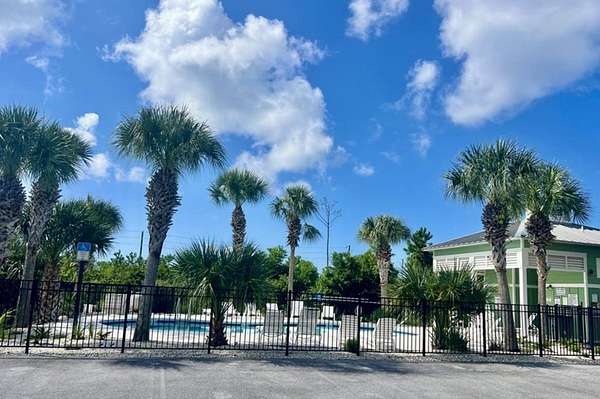 From Hwy 98 in Mexico Beach, go north on 15th street, left on Joe Dr and left into Ocean Plantation. Pass the pool and clubhouse, then right on Ocean Plantation Cir. Look for sign on lot near cul de sac.